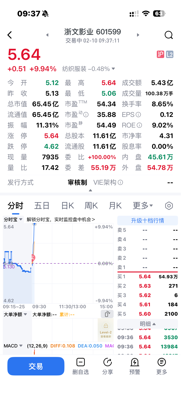 $浙文影业(SH601599)$ 昨天的空狗都不爱叫了?