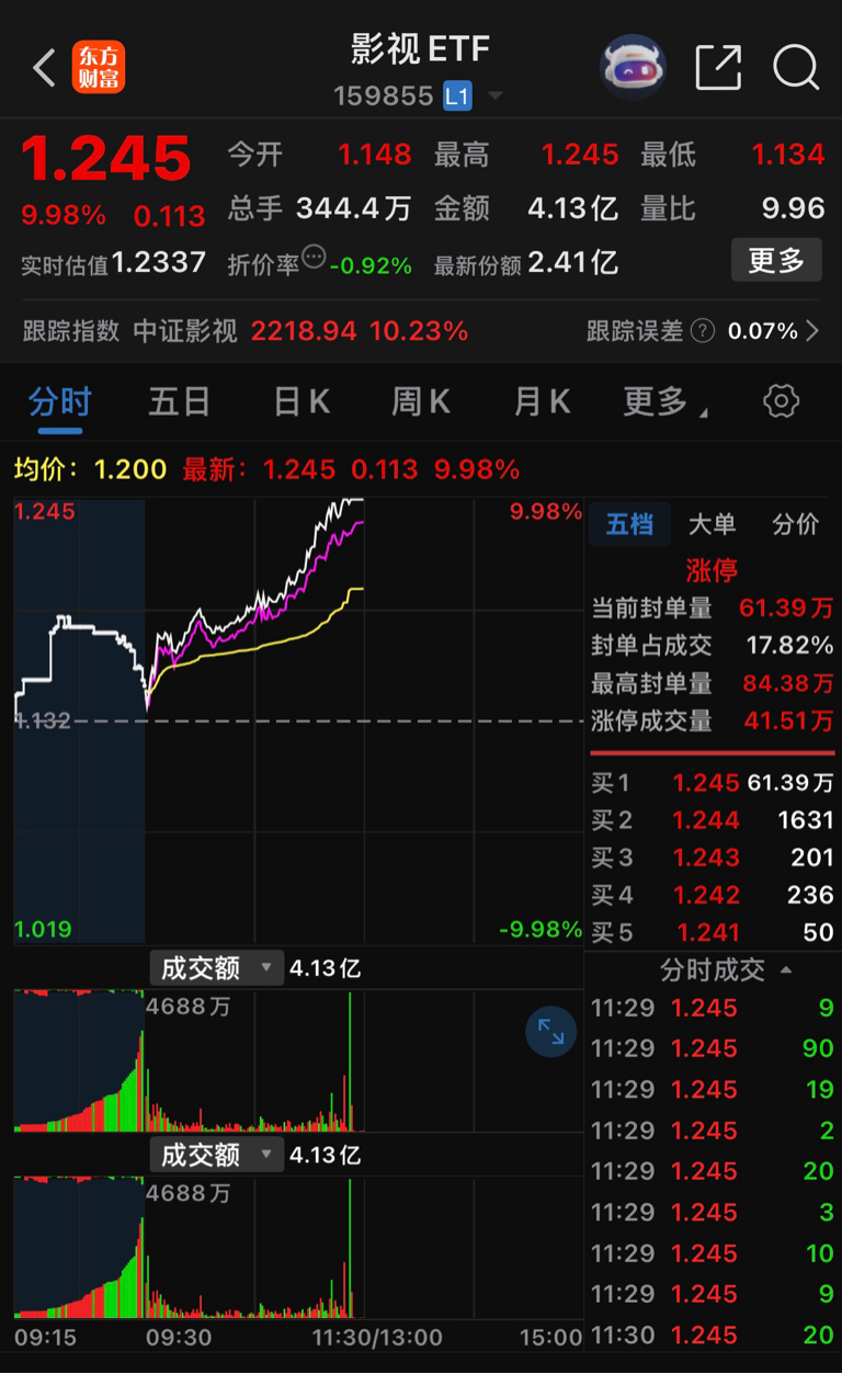 天哪!也涨的太猛了吧!连影视传媒ETF都涨停了……