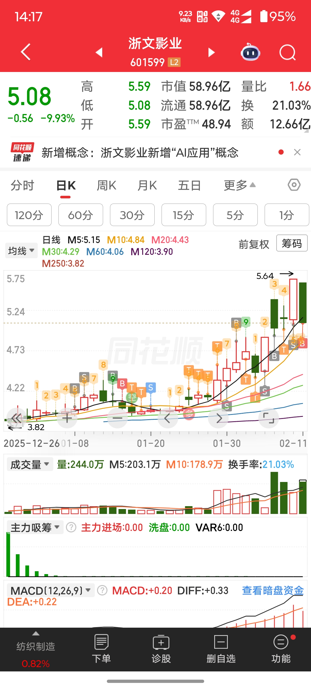 $浙文影业(SH601599)$ 昨天清仓了,今天跌停附近慢慢的接一点回来