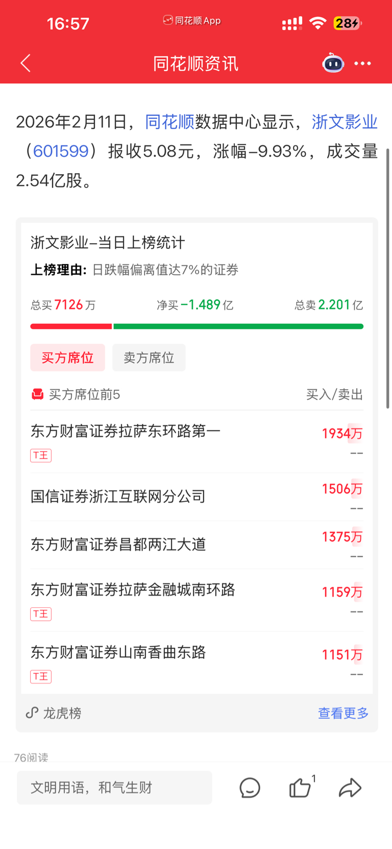 $浙文影业(SH601599)$ 全是家人,哎,明天又完了