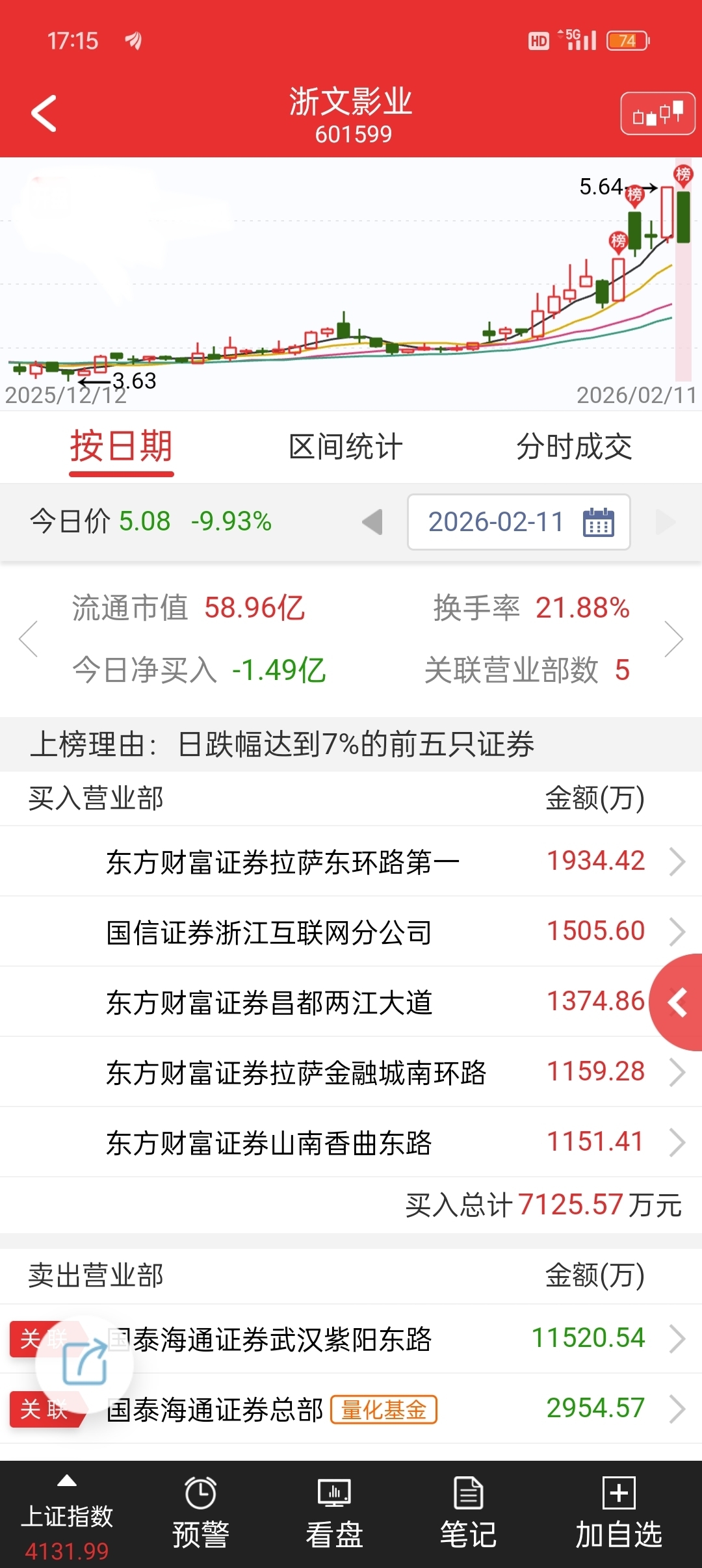 拉萨游资天团真神了,我买万达电影他也买了,我买这浙文影业他又今天买了,世间竟然有