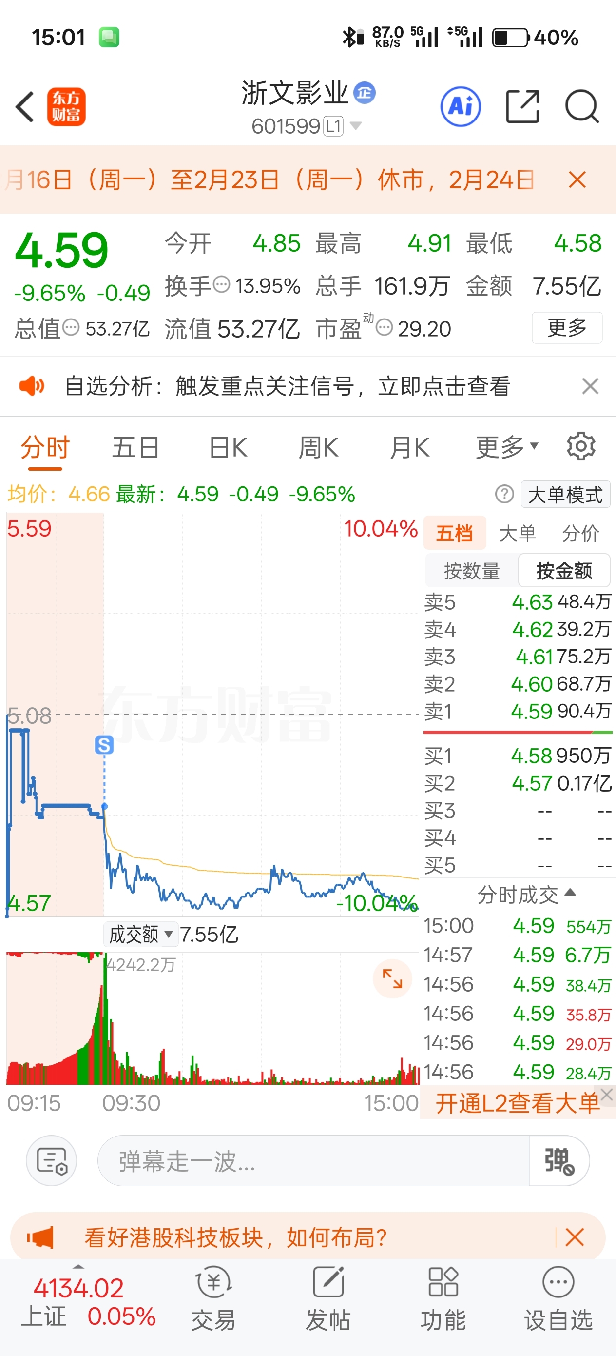 $浙文影业(SH601599)$ 还好溜得快,md,算我倒霉,亏了6个点