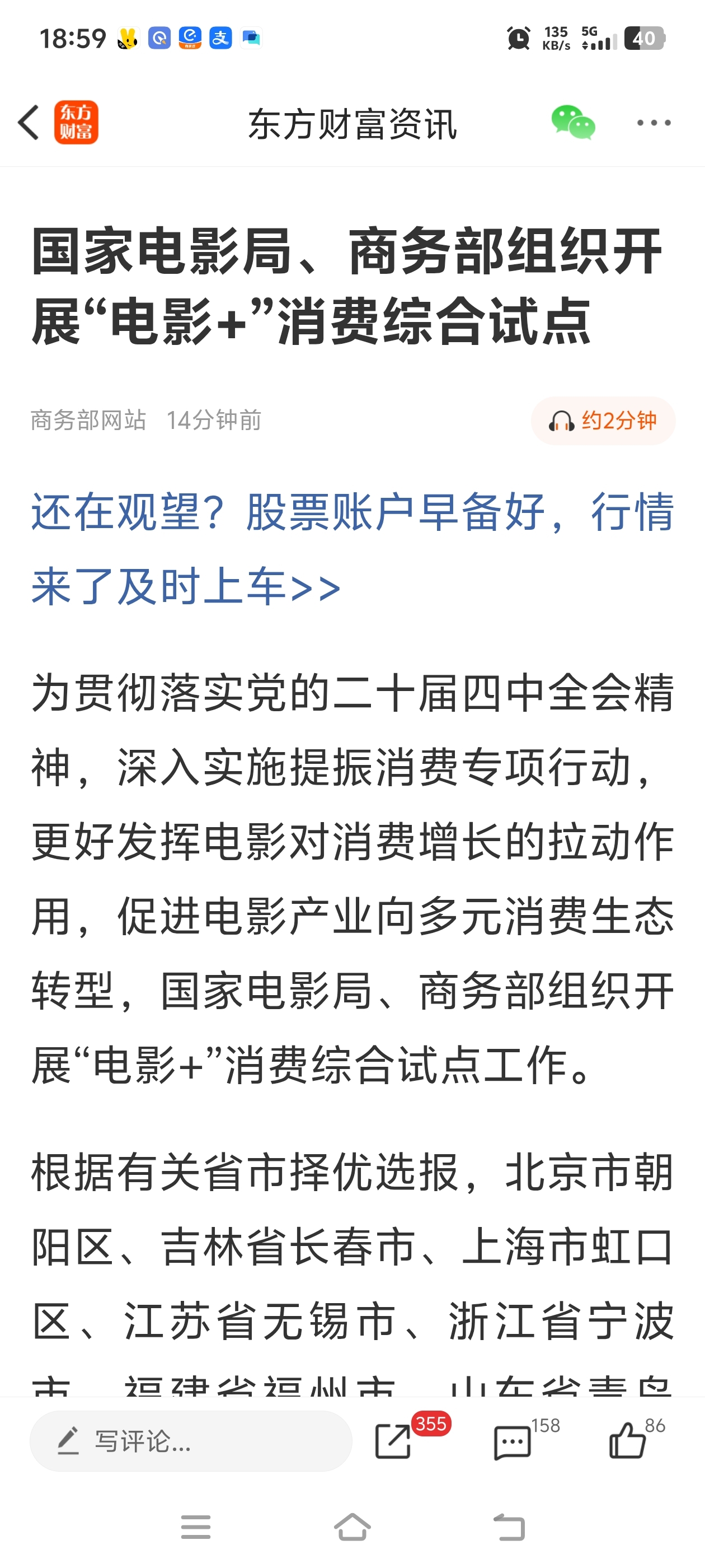 $浙文影业(SH601599)$ 这利好不就来了