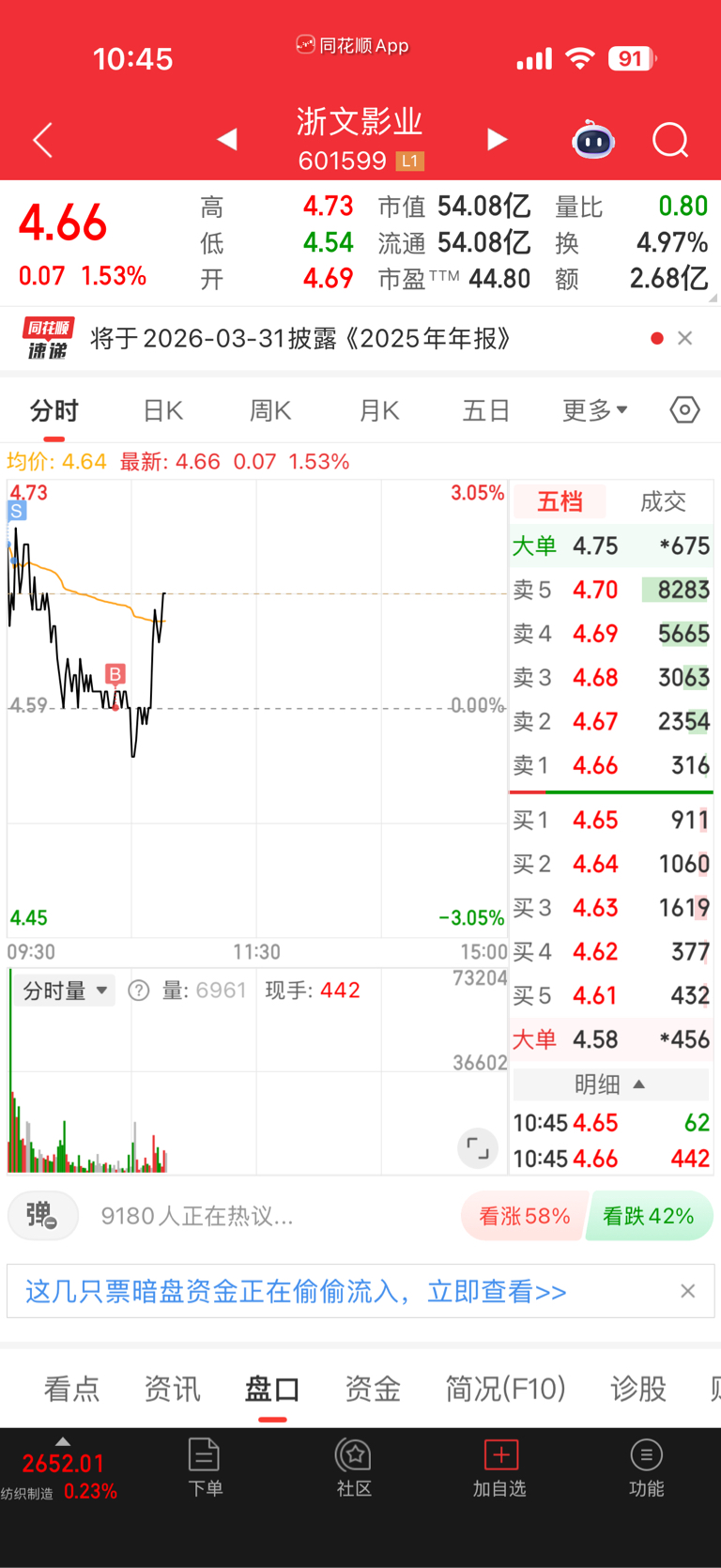 $浙文影业(SH601599)$ 昨天跌停抄底,今天做了个高抛低吸