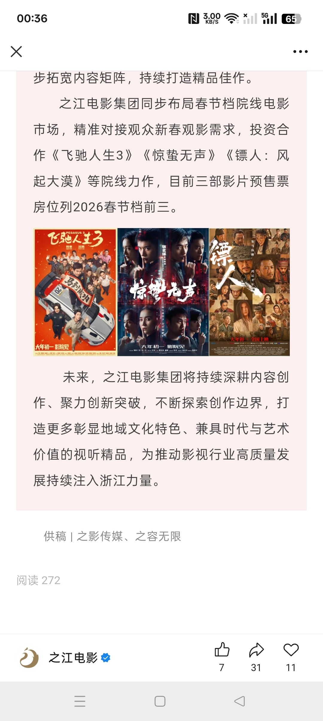 浙文影业出品两部春节档电影,都是之江电影带的,肯定是浙江文投下的一部棋,要不然以