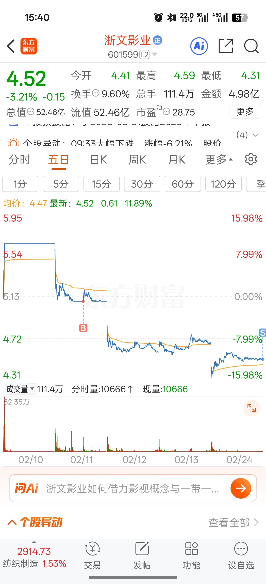 $浙文影业(SH601599)$ 我就知道这样的结果,杀猪盘,年前我发了一下评论,好多人都在骂,结果今天真的开门红都不给,亏了1000多,走了,难受