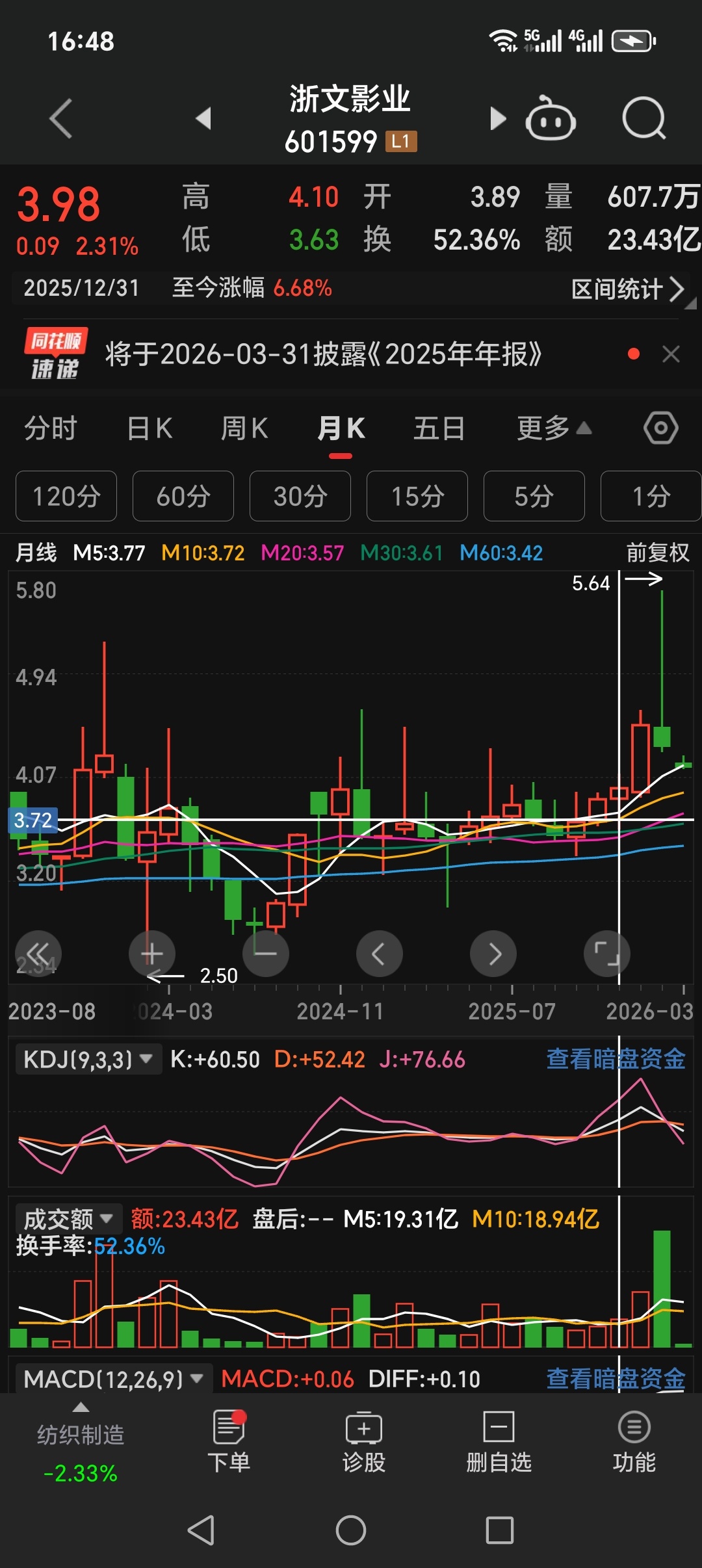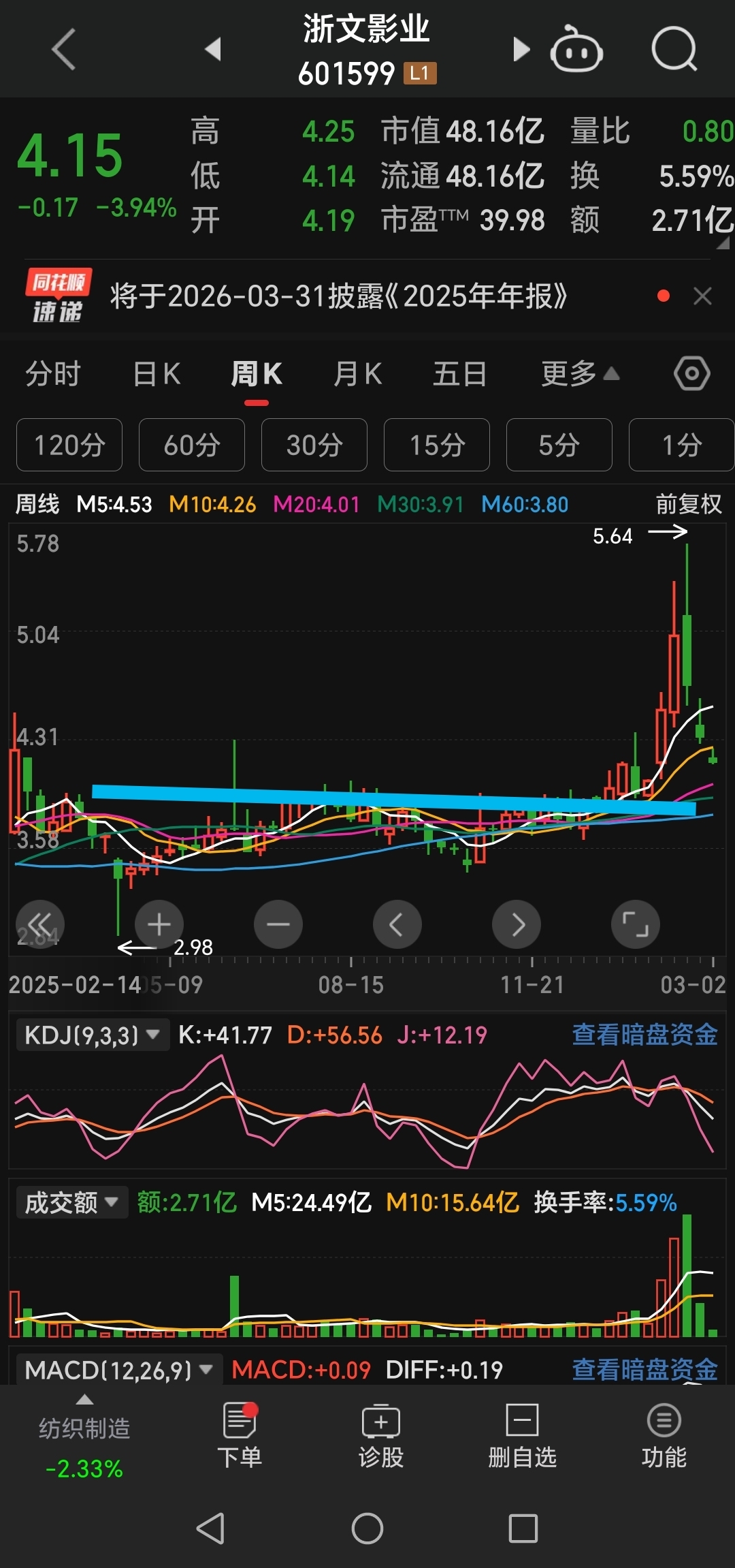 $浙文影业(SH601599)$ 已经跌破周线箱体上沿4.31元,三天收不上来,只能看之前箱体中轨线3.8元的支撑了。