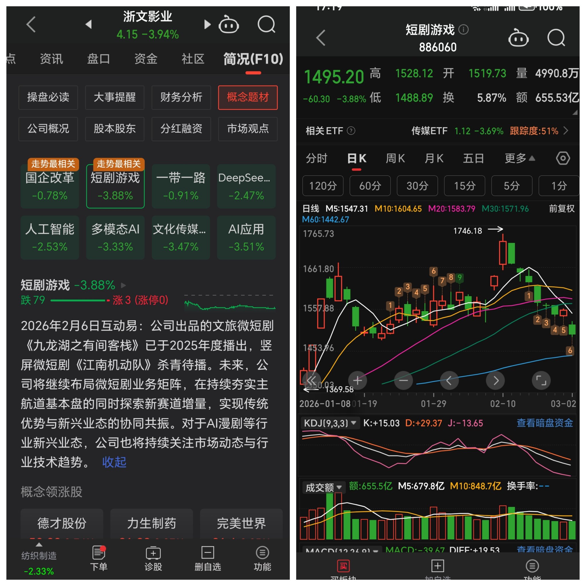 难怪了,它被归为短剧游戏股,没有任何营收,却硬蹭这个概念,原来它硬蹭的这两个概念:影视院线和短剧游戏都是暴跌八天的。