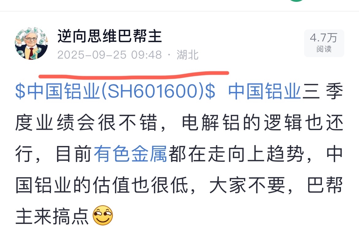 $中国铝业(SH601600)$ $神火股份(SZ000933)$ 电解铝开启加速行情了,这一次运气不错,巴帮主成功的抄到了中国铝业和神火股份的底部