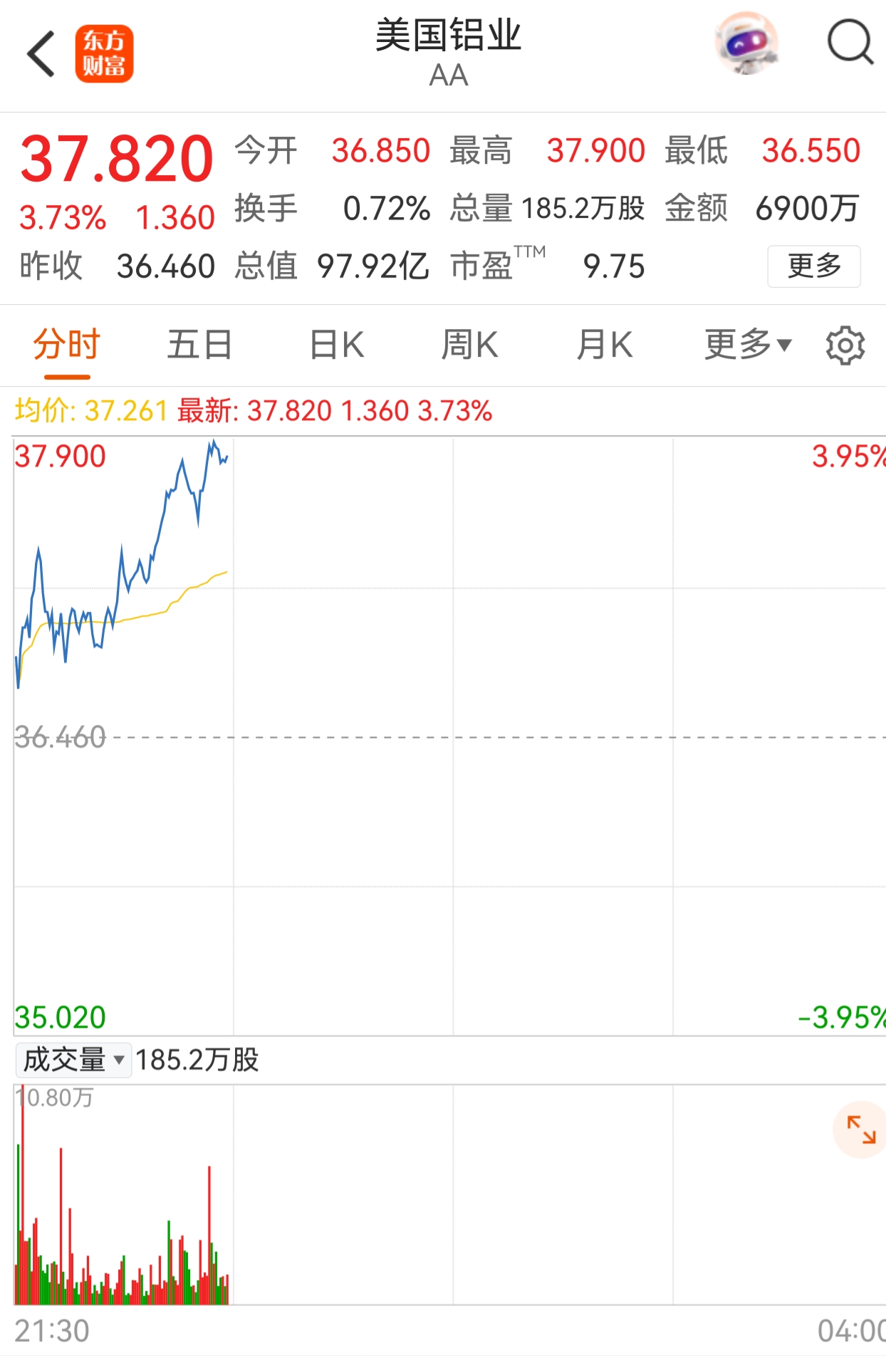 美铝又涨!!!