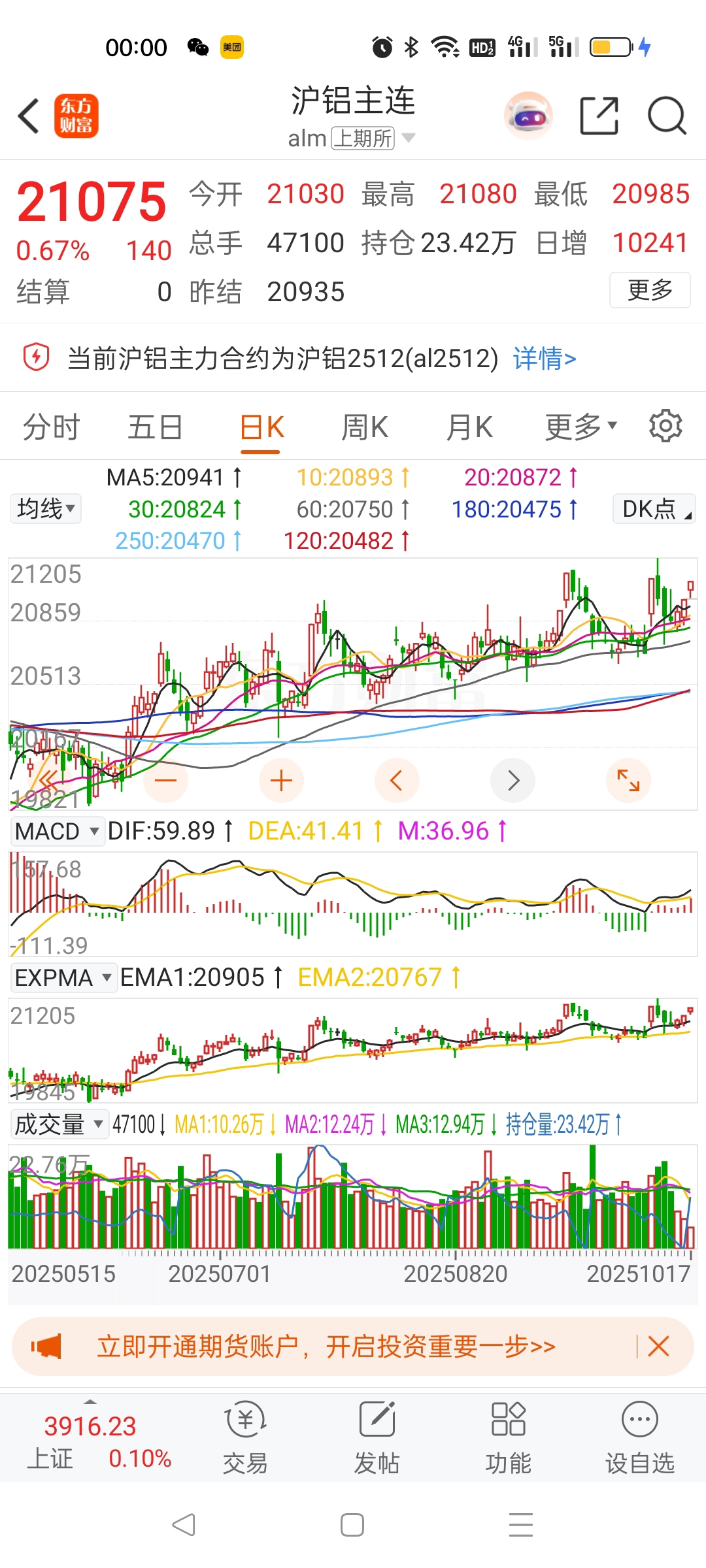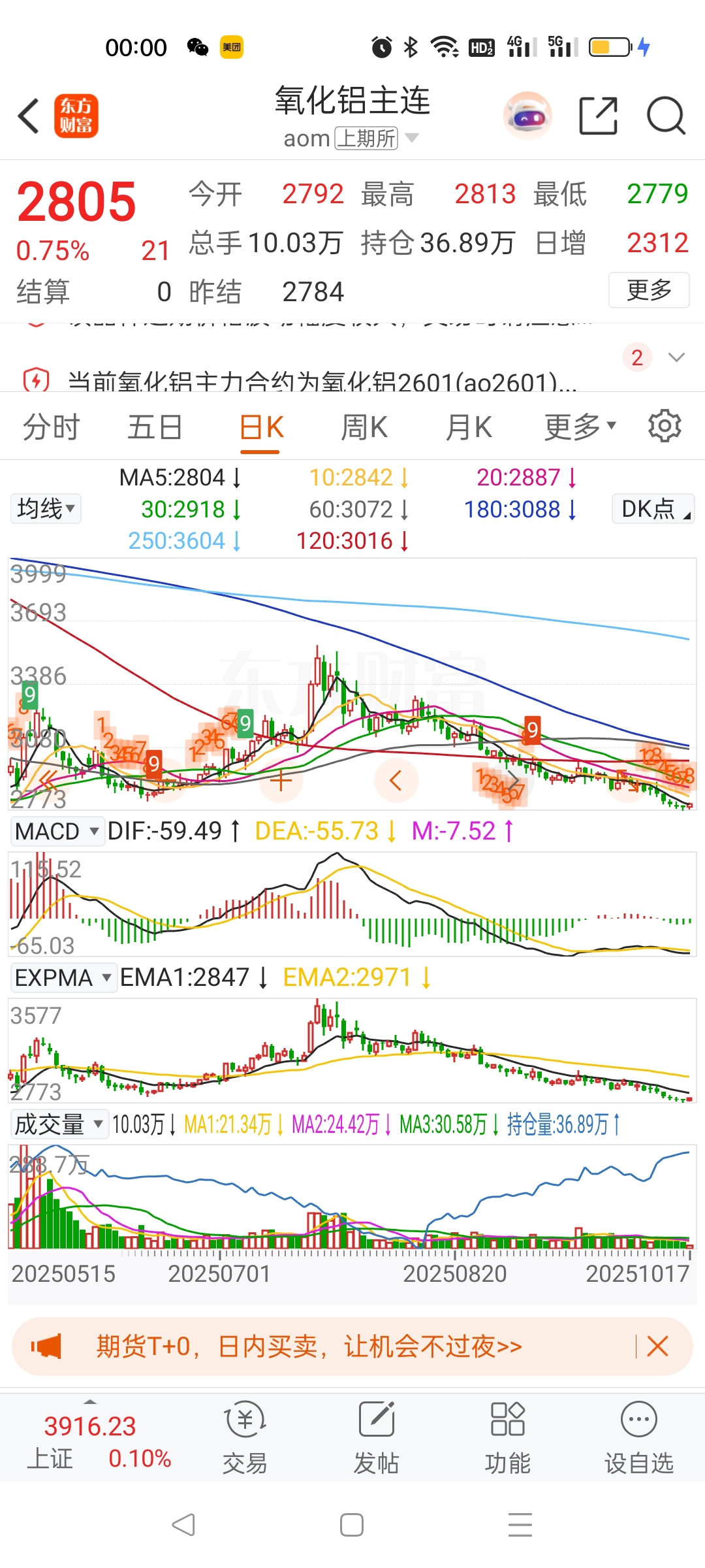 美元指下行,沪铝综合铝爆发,氧化铝触底反弹,明天看中铝表演