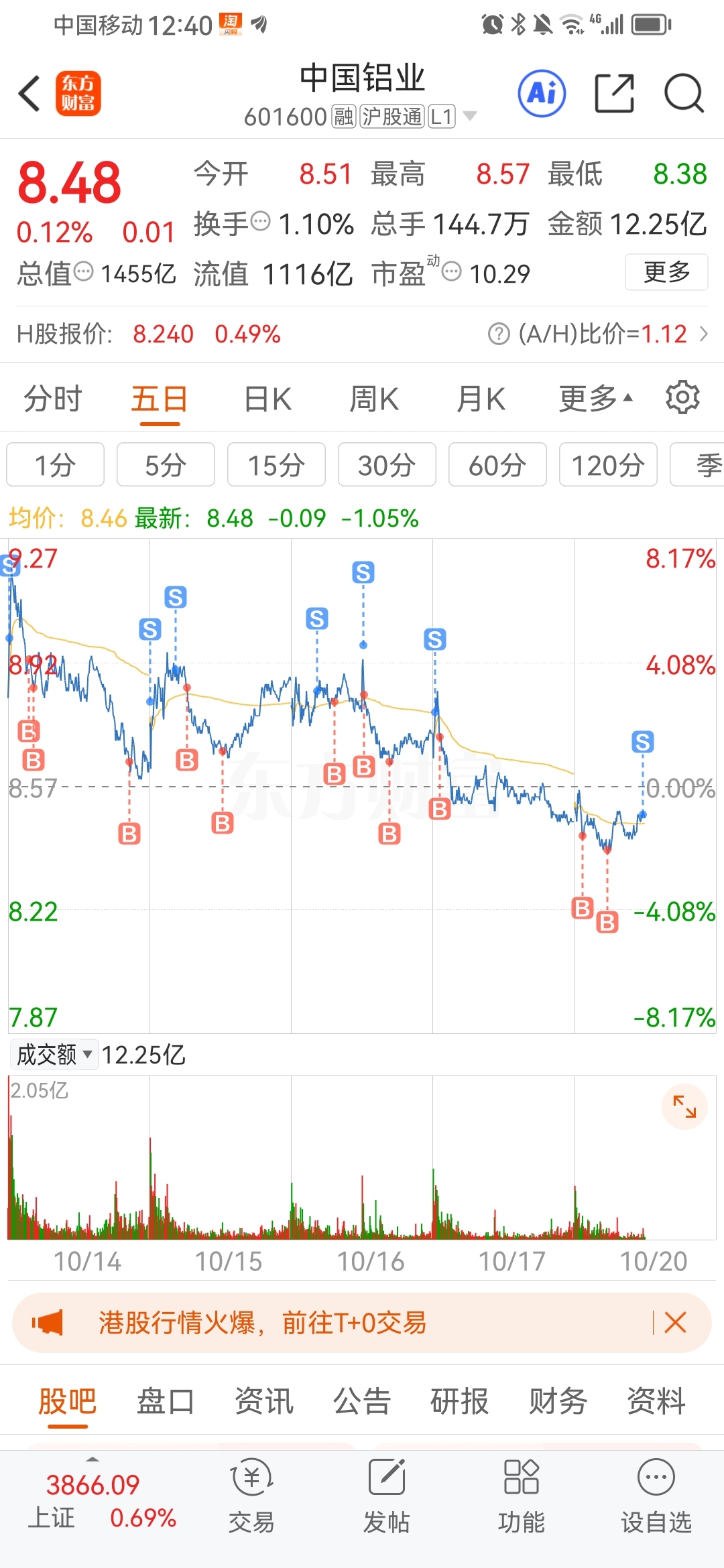 $中国铝业(SH601600)$ 继续吃波动利润,卖出低吸的部分卖出保证底仓利润安全垫#复盘记录# #炒股日记# 高抛低吸,低吸高抛,买资产不怕暴雷。