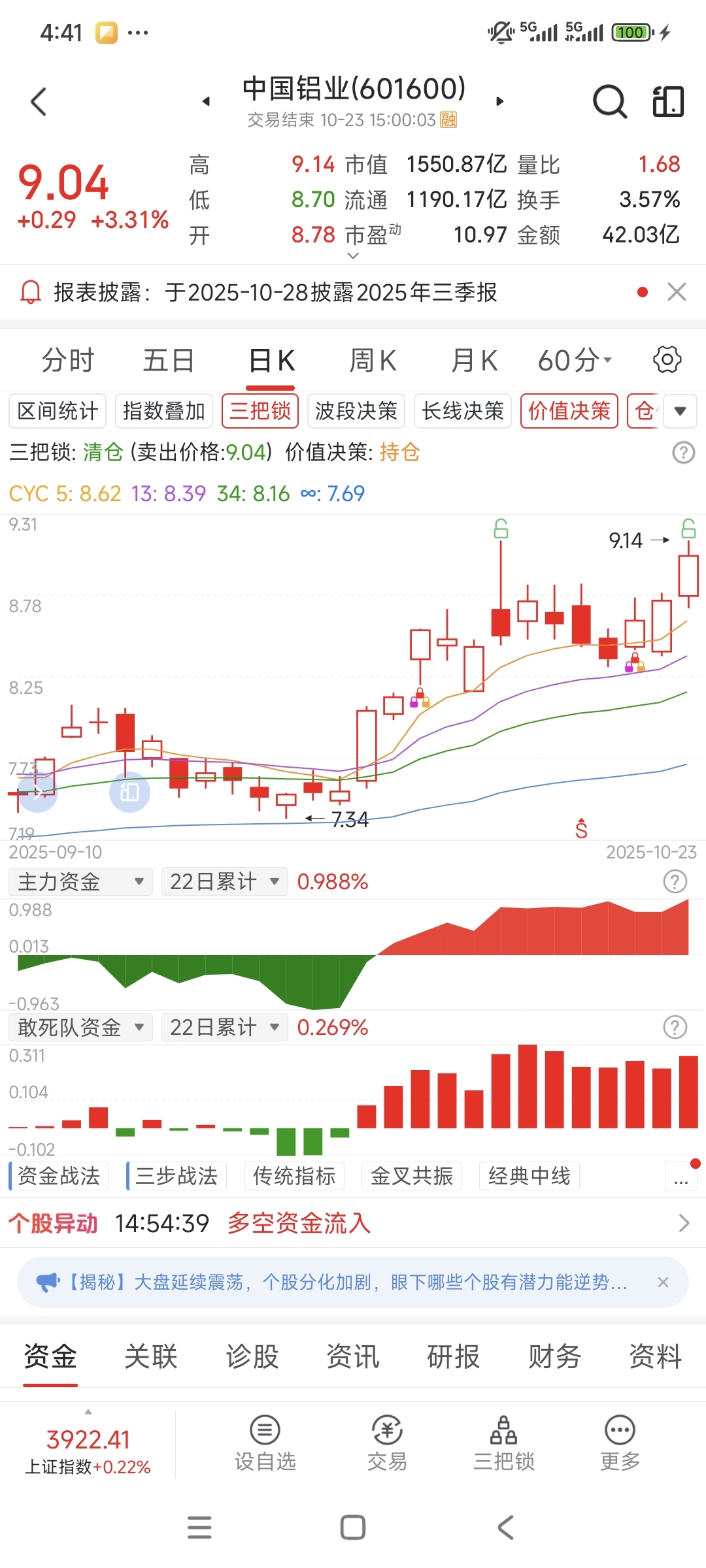 $中国铝业(SH601600)$ 今天跑了,明天必跌,因为出绿锁了