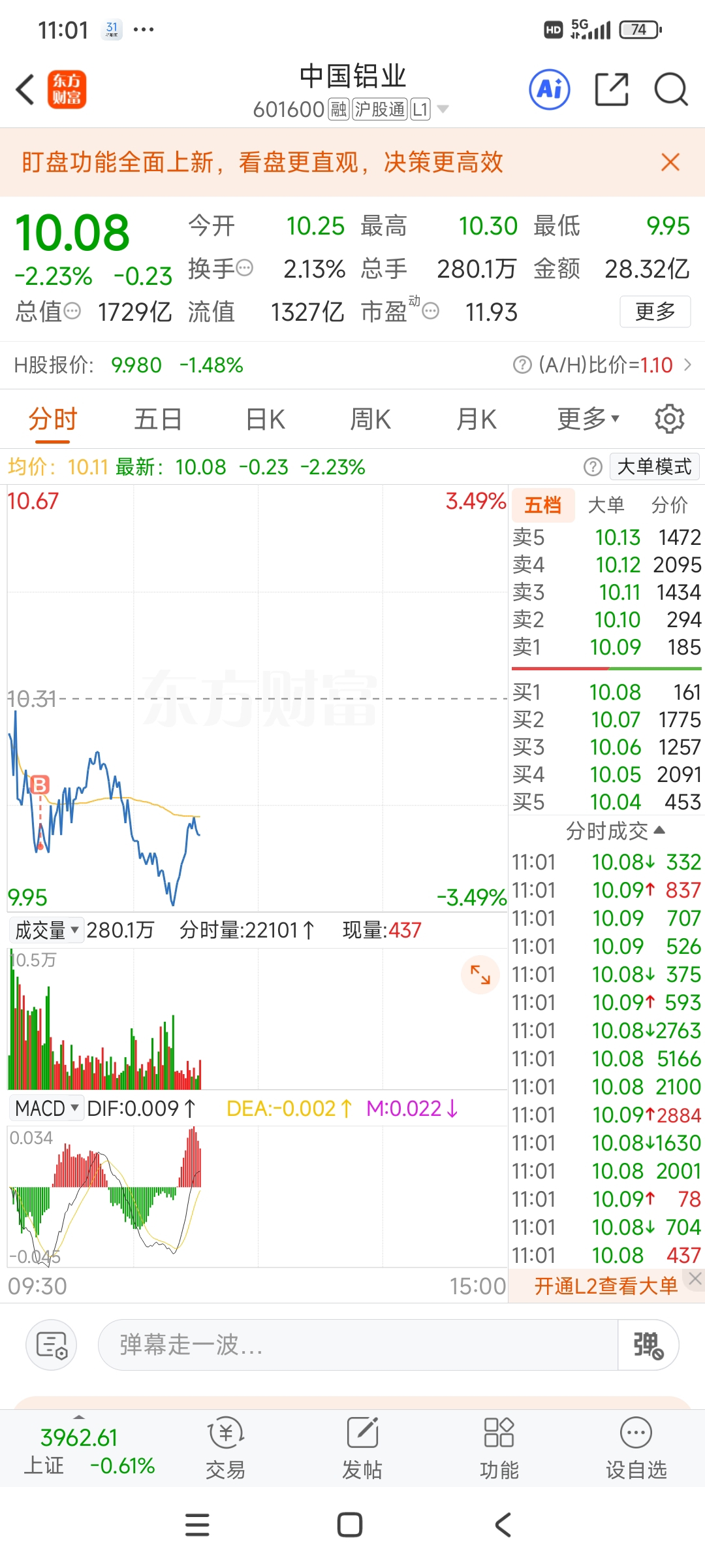 $中国铝业(SH601600)$ 把昨天卖的T回来了,买的有点高
