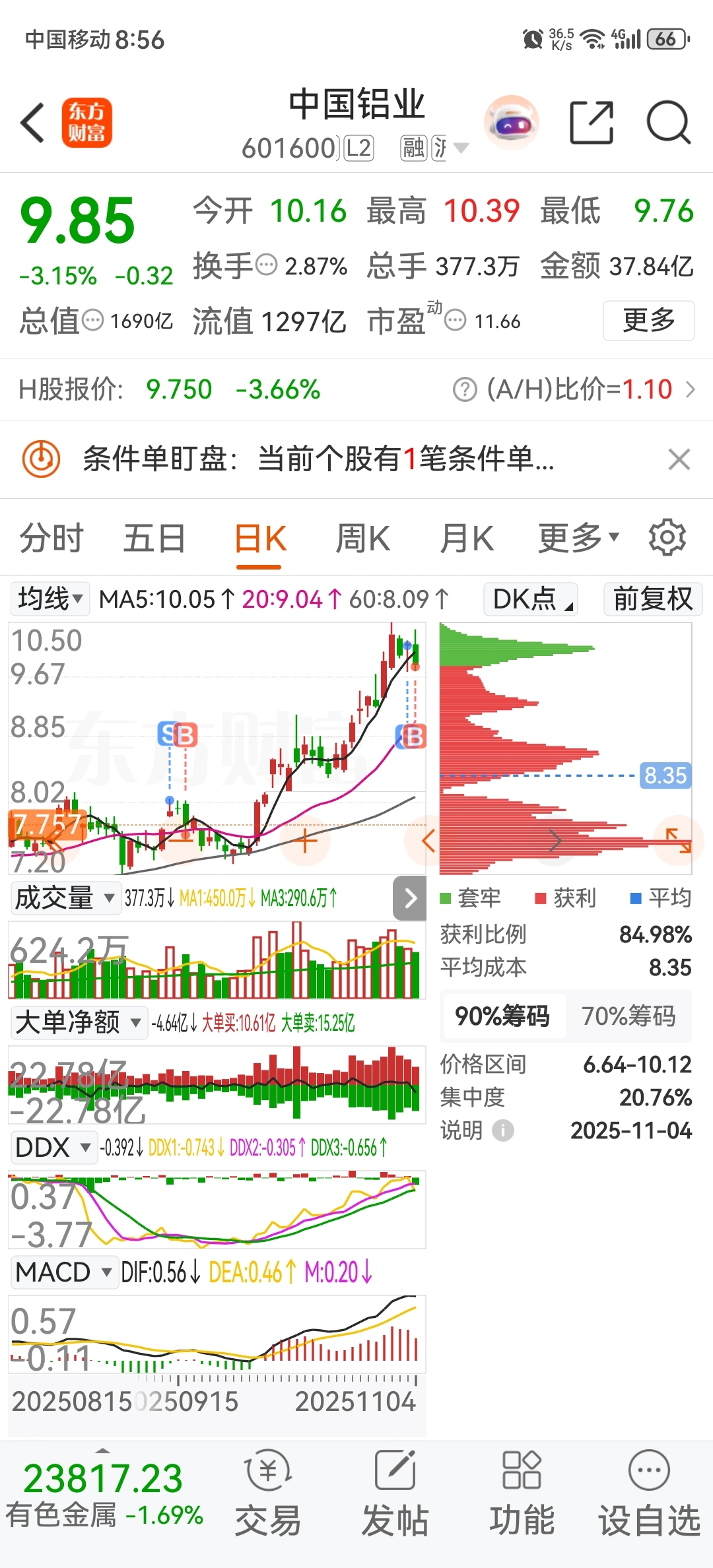 $中国铝业(SH601600)$ 慢慢来,不要急,长线做,振幅不大只要向上走就行。