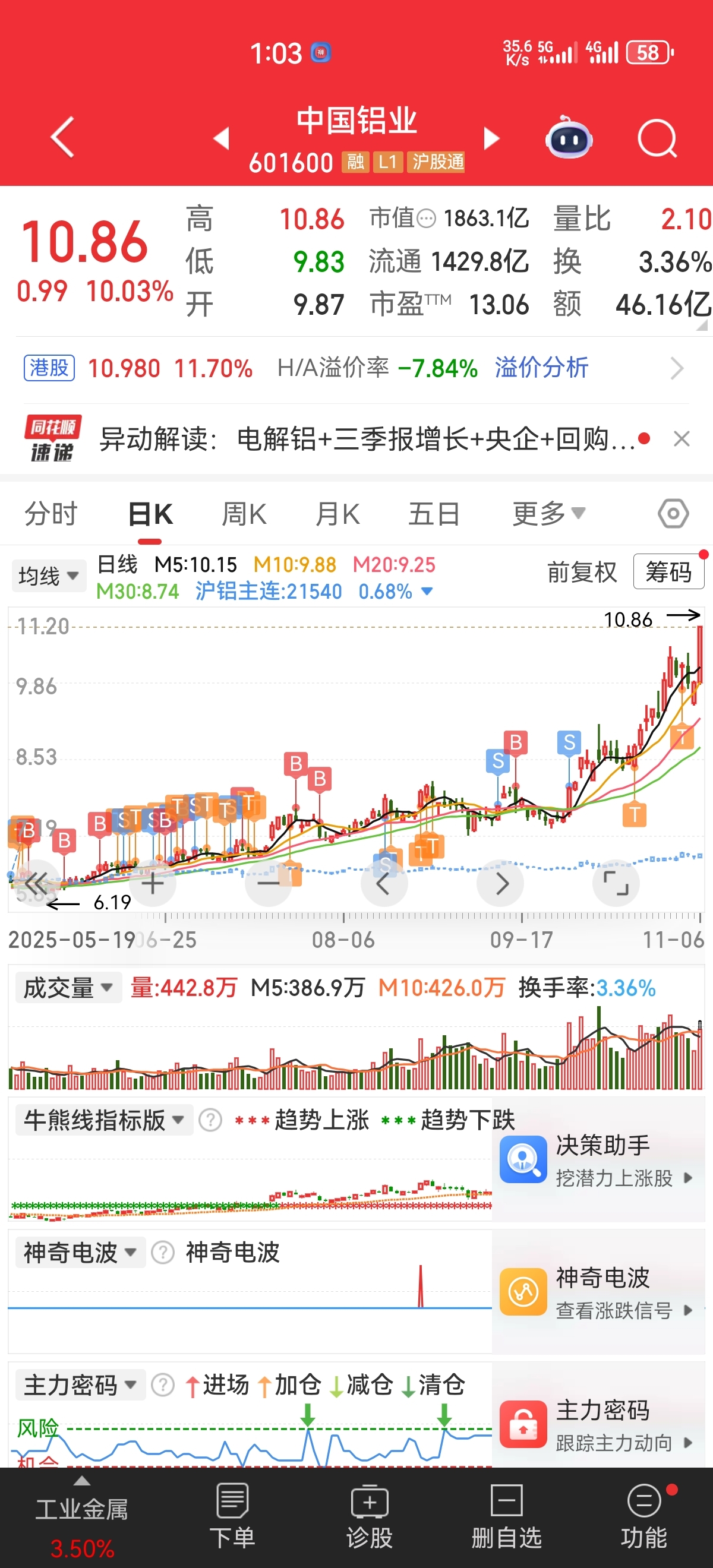 $中国铝业(SH601600)$ 这个股赚了七万 见好就收了