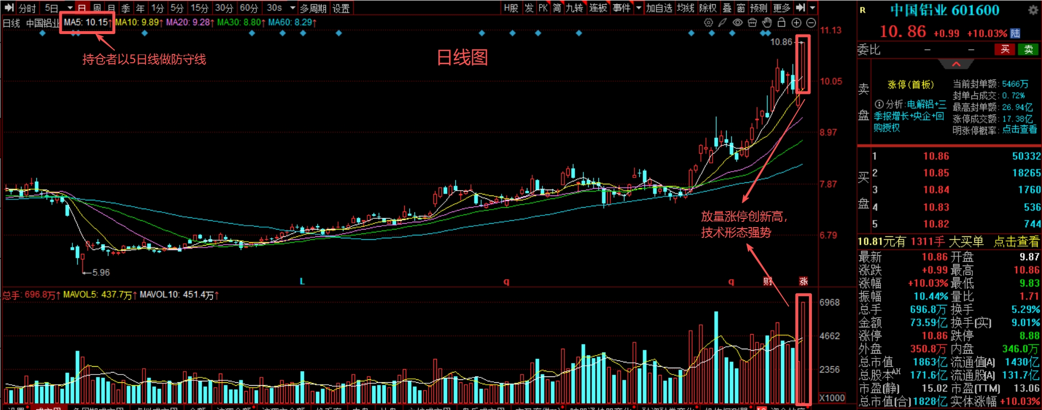 今日放量涨停突破前期高点,股价站上所有均线并创阶段性新高。当前均线系统呈多头排列