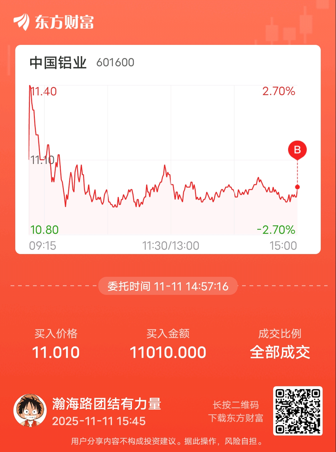 委托标的:中铝买卖方向:买笔记:趋势向上