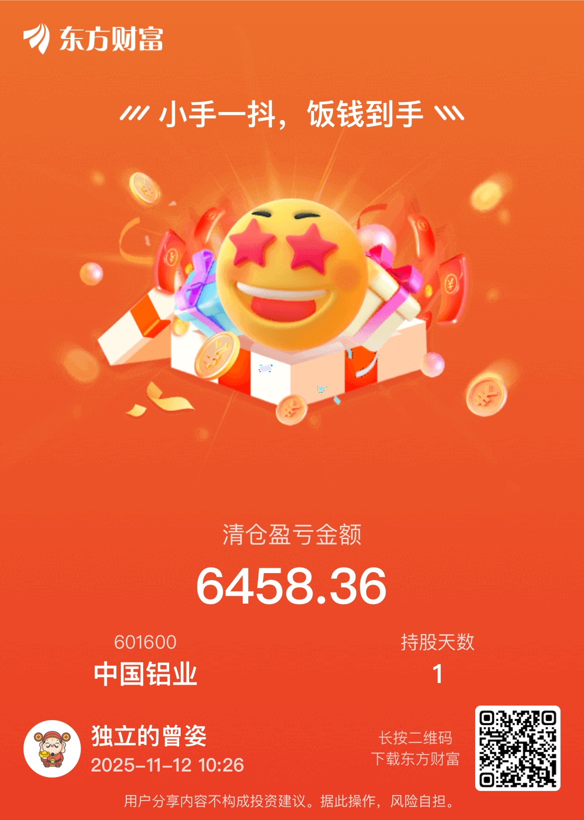 $中国铝业(SH601600)$ 昨天进今天走了