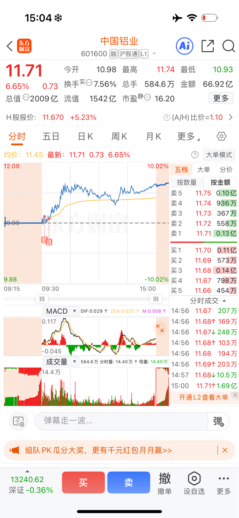 $中国铝业(SH601600)$ 收盘啦
