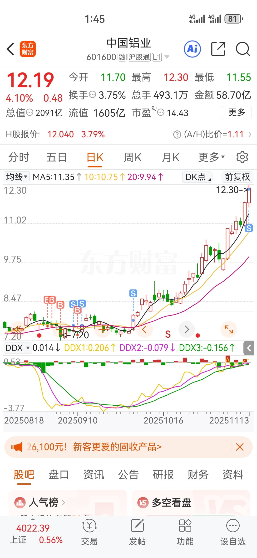 $中国铝业(SH601600)$ 你们还有多少仓位。