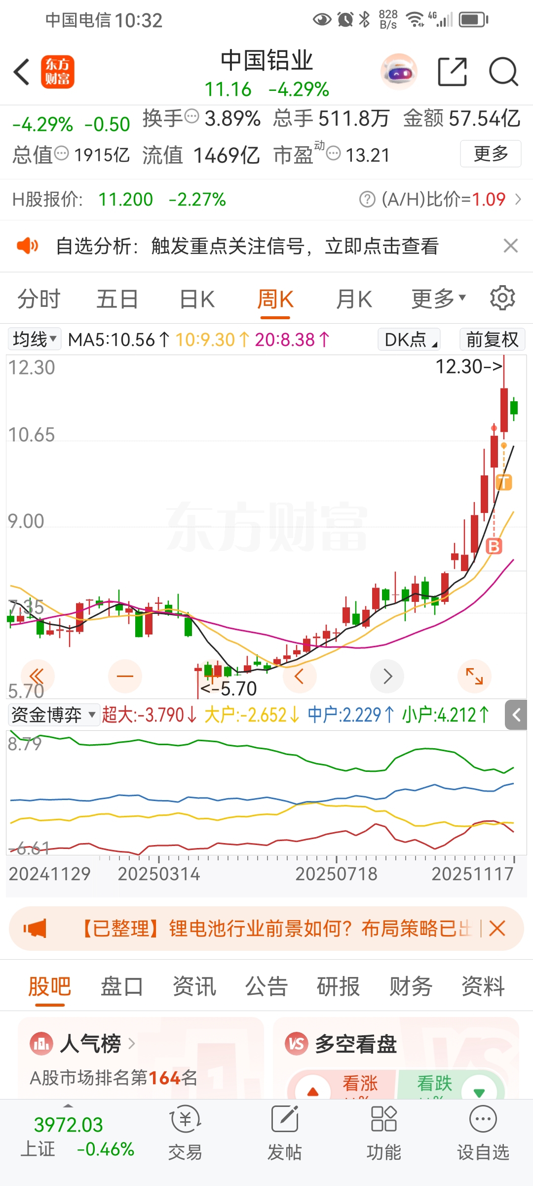$中国铝业(SH601600)$ 到12.22减一半,隔天看到不对劲就赶紧跑了!少赚也是赚~