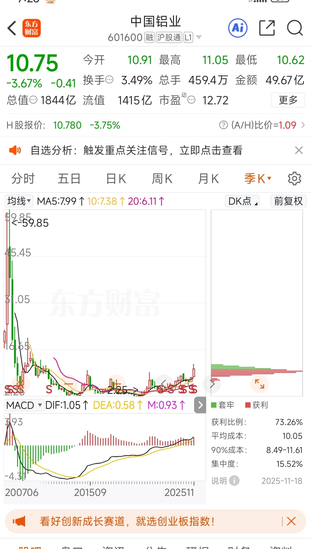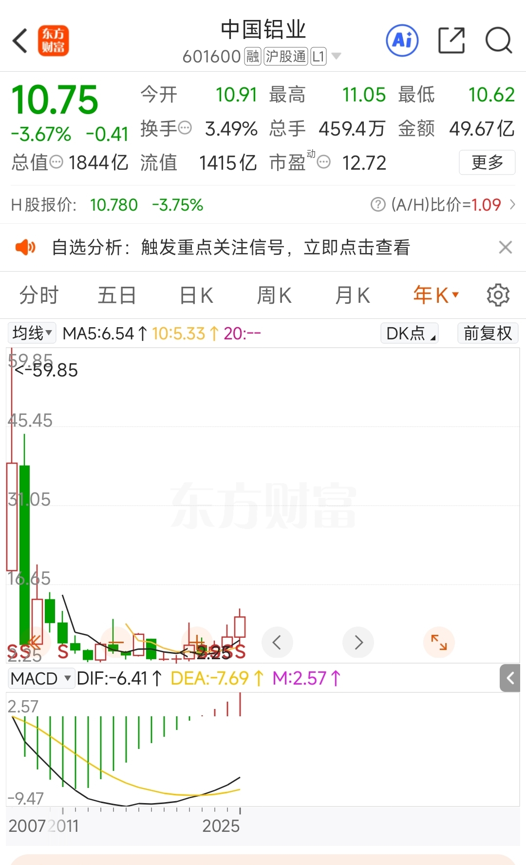 $中国铝业(SH601600)$ 就看这3个趋势就行,一目了然,其它都是浮云。季线,年线,市盈率,都是刚刚开始!有能力t是本事,没能力像我长线持有,全仓猛干,也是一种策略。等几年后再来看这三张图!祝君发财!