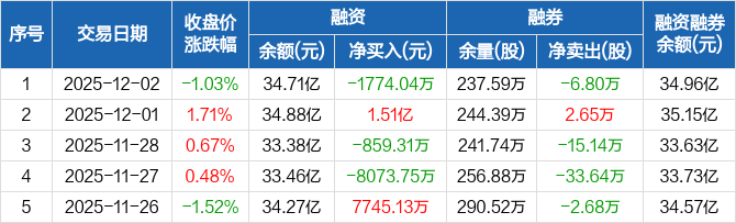 中国铝业:融资净偿还1774.04万元,融资余额34.71亿元(12-02)