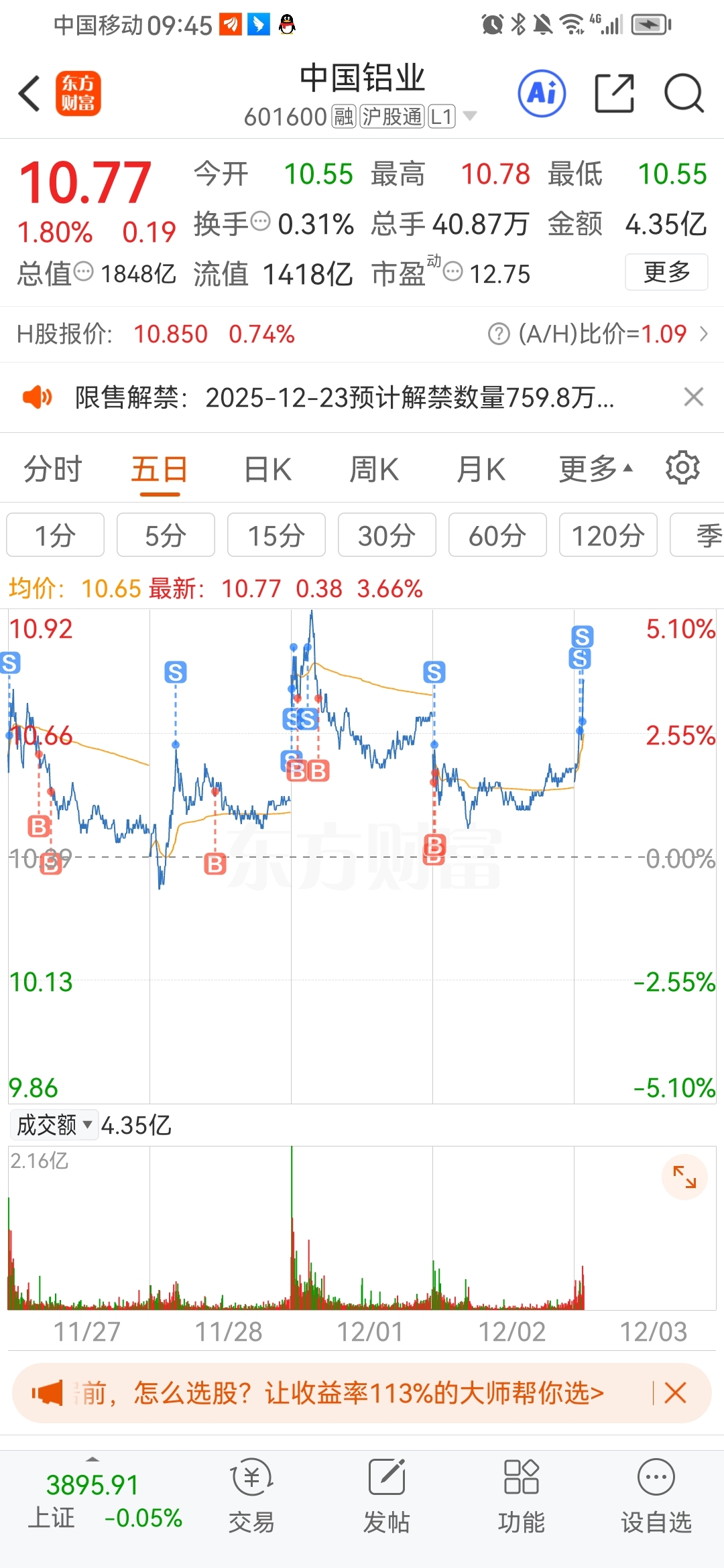 $中国铝业(SH601600)$ 卖出之前拿的仓位,高抛低吸,低吸高抛做好底仓利润安全垫,#炒股日记# #复盘记录# 高抛低吸,低吸高抛