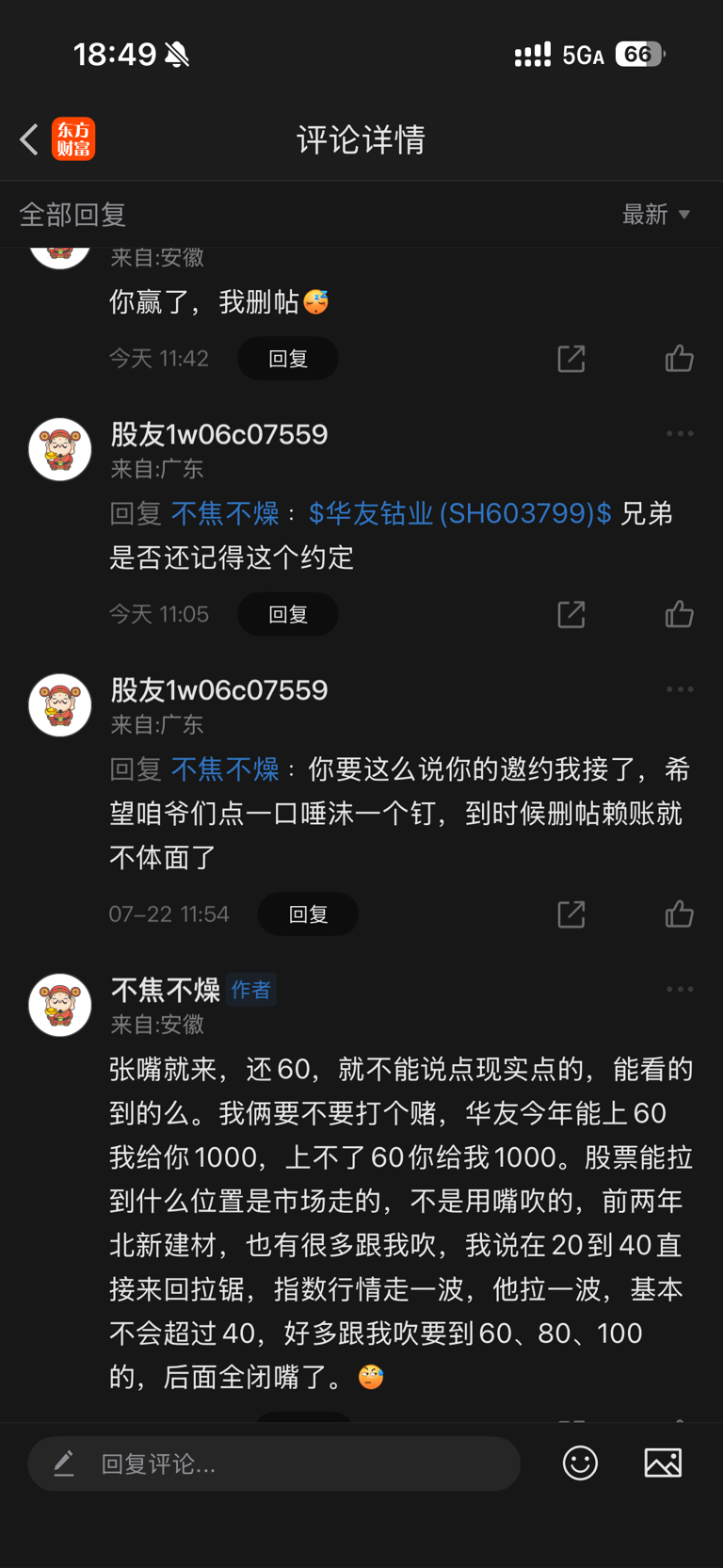 温馨提示: 1.根据《证券法》规定,禁止编造、传播虚假信息或者误导性信息,扰乱证券市场;2.用户在本社区发表的所有资料、言论等仅代表个人观点,与本网站立场无关,不对您构成任何投资建议。用户应基于自己的独立判断,自行决定证券投资并承担相应风险。《东方财富社区管理规定》