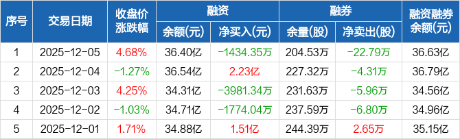 中国铝业:融资净偿还1434.35万元,融资余额36.4亿元(12-05)