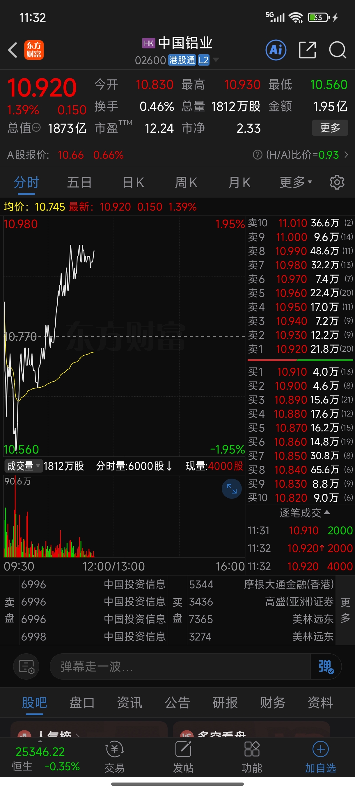 $中国铝业(SH601600)$ 从四块反超到现在。