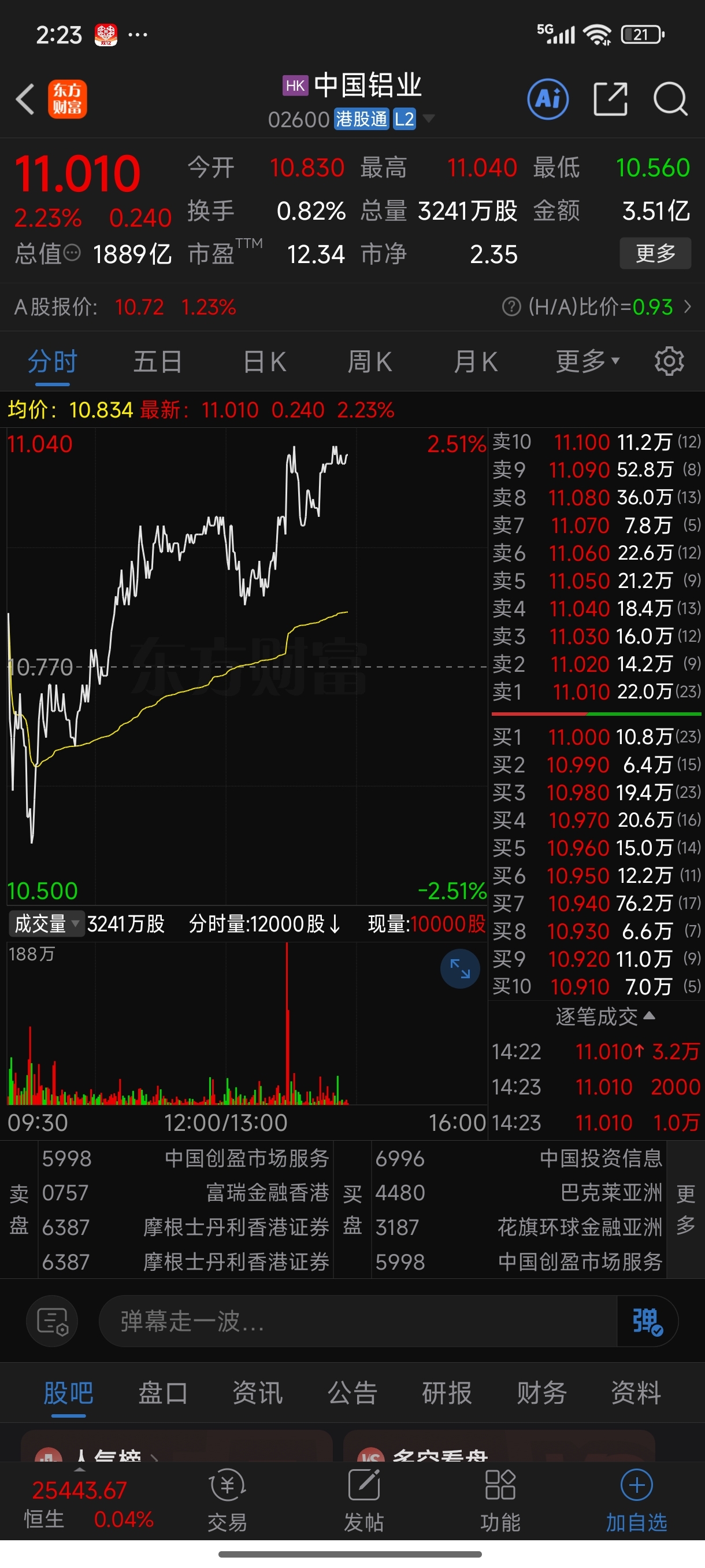 $中国铝业(SH601600)$ 港股回十一上方]