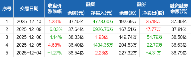 中国铝业:融资净偿还4778.6万元,融资余额37.16亿元(12-10)