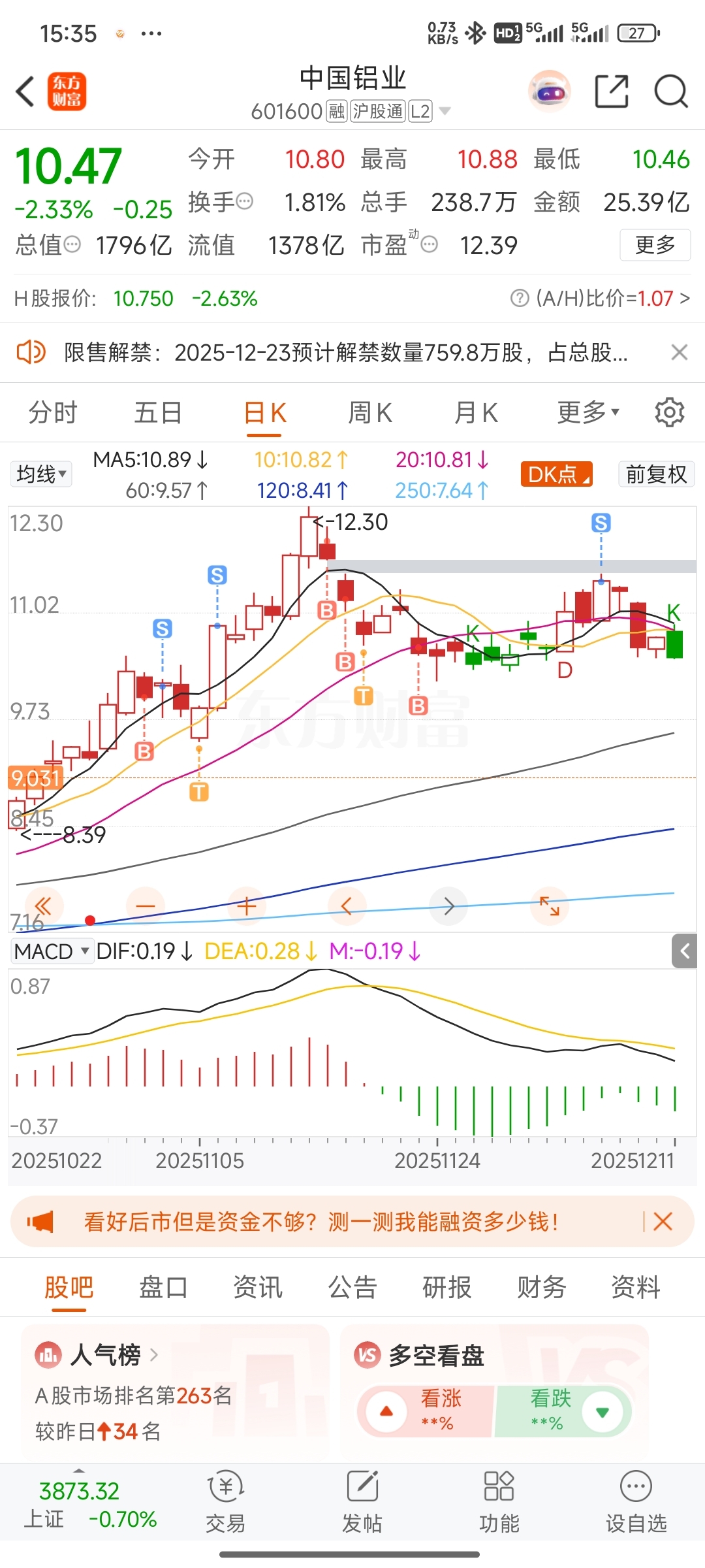 $中国铝业(SH601600)$ 上周五减仓1/4看来还是减少了,应该减半仓的