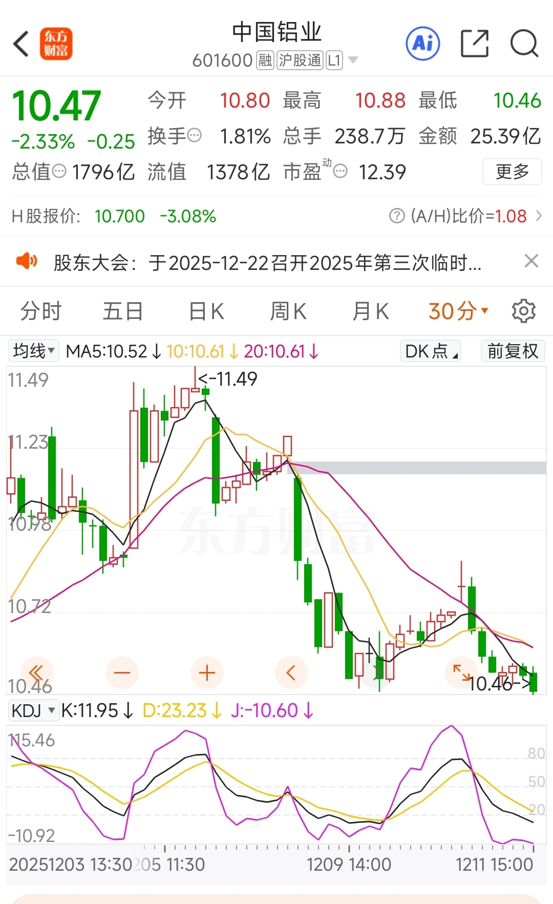 $中国铝业(SH601600)$ 30分钟kdj值都已在低位,感觉调整差不多了,后面继续区间震荡概率大,等日线支撑上来,然后业绩出来,一飞冲天!