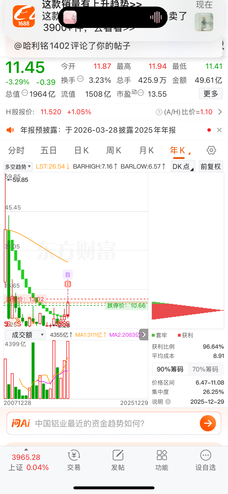 $中国铝业(SH601600)$ 买在底部卖在顶部
