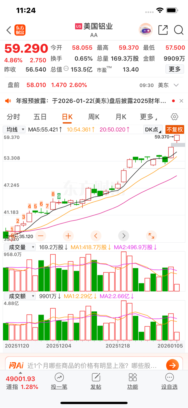 沪铝创新高,大涨特涨,,美国铝业也是爆涨,明天一定是高开高走