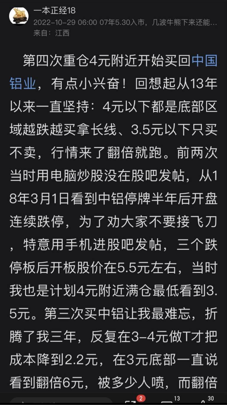 $中国铝业(SH601600)$ 屠刀已高高举起!中国铝业已经14元以上,何时拐头向下已经不重要,重要的风险来临没有几个人能逃得掉,周期股冲顶末期有多疯狂到时候下跌就有多惨烈!切记!切记!(一个在中铝做了四次翻倍行情老股民的忠告)