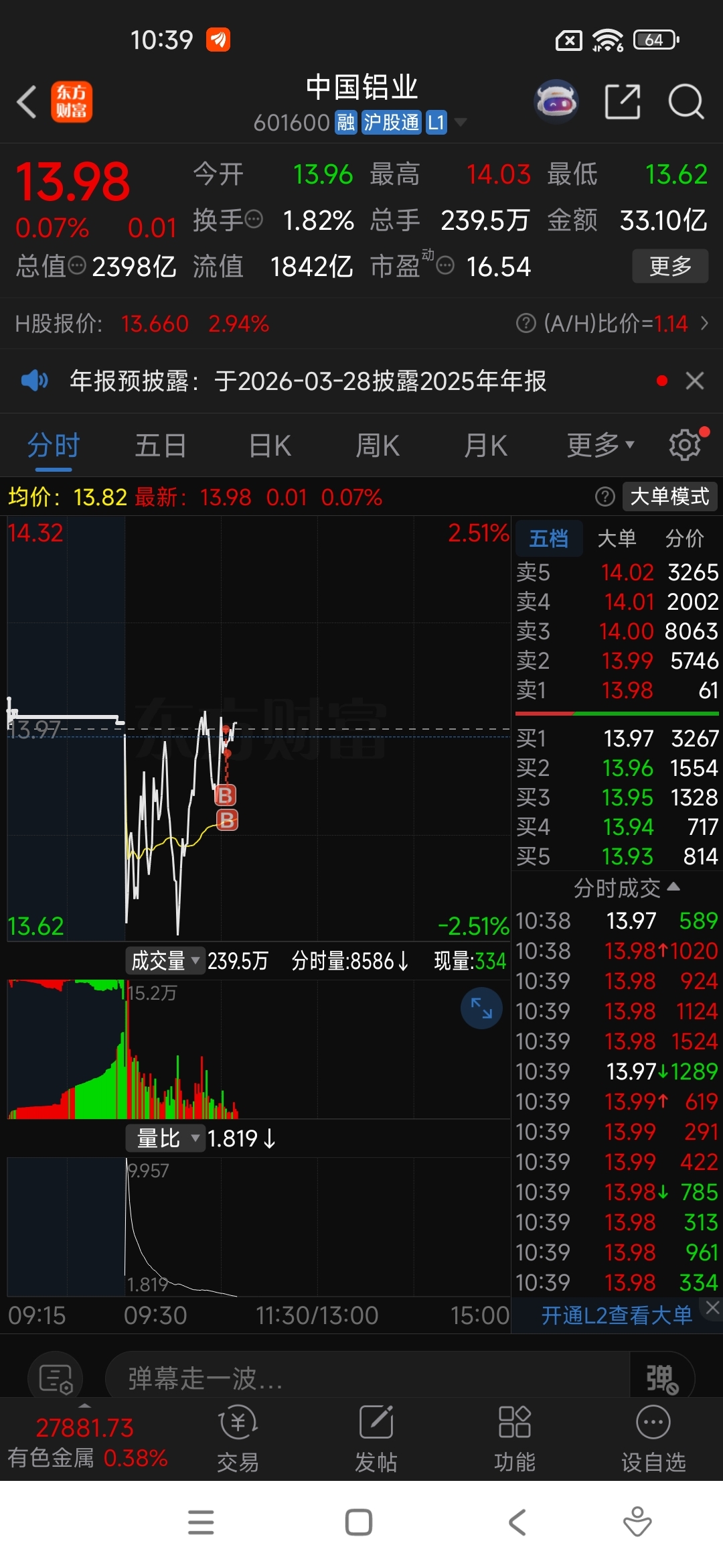 $中国铝业(SH601600)$ 在不进场没机会了