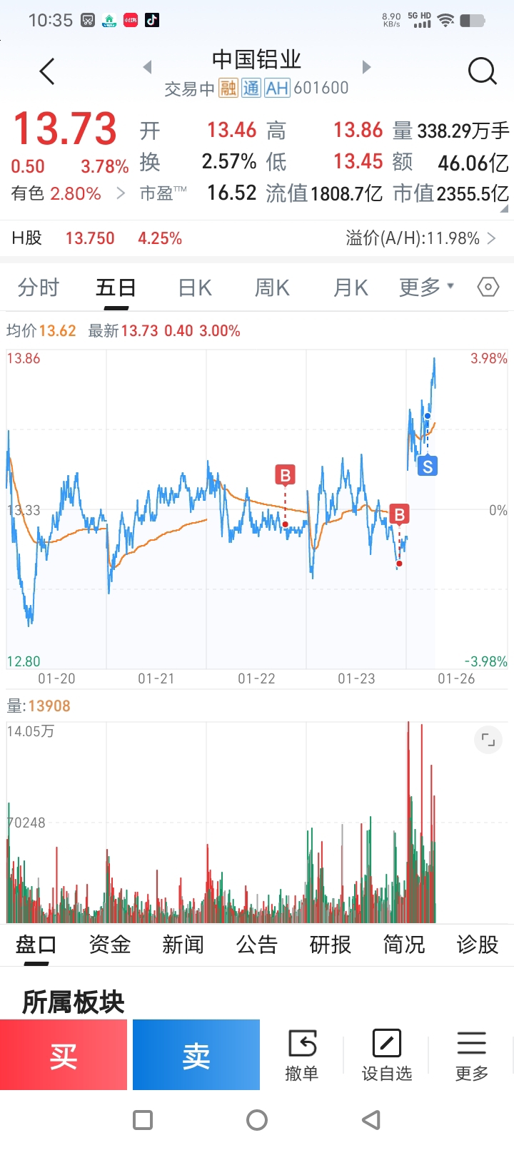 $中国铝业(SH601600)$ 跑早了我个壳,现在想追进来,主要被大A吓了一下。