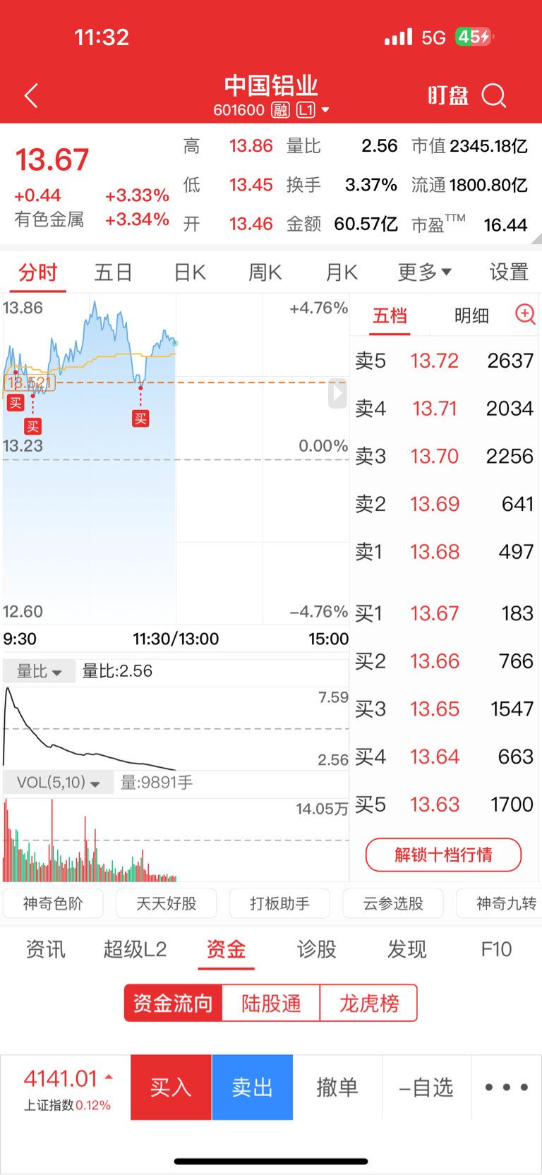 $中国铝业(SH601600)$ 今天开始建仓,准备拿个中期,看到16就抛