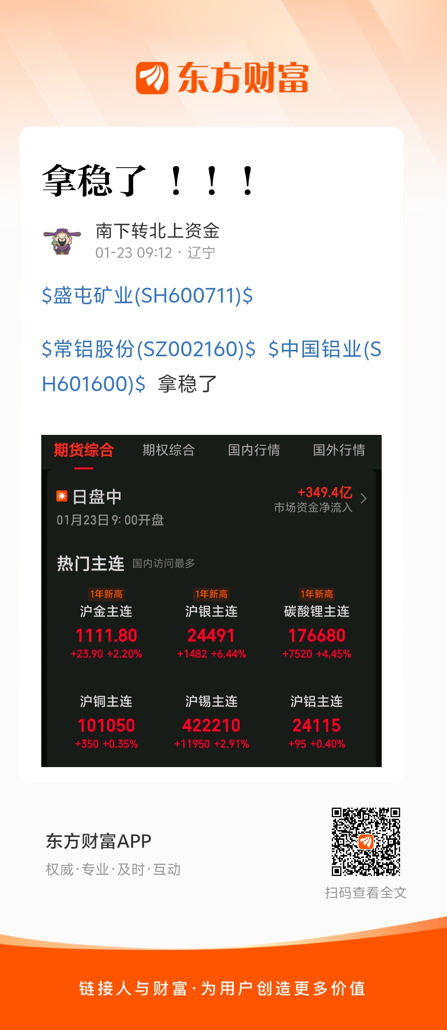 温馨提示: 1.根据《证券法》规定,禁止编造、传播虚假信息或者误导性信息,扰乱证券市场;2.用户在本社区发表的所有资料、言论等仅代表个人观点,与本网站立场无关,不对您构成任何投资建议。用户应基于自己的独立判断,自行决定证券投资并承担相应风险。《东方财富社区管理规定》