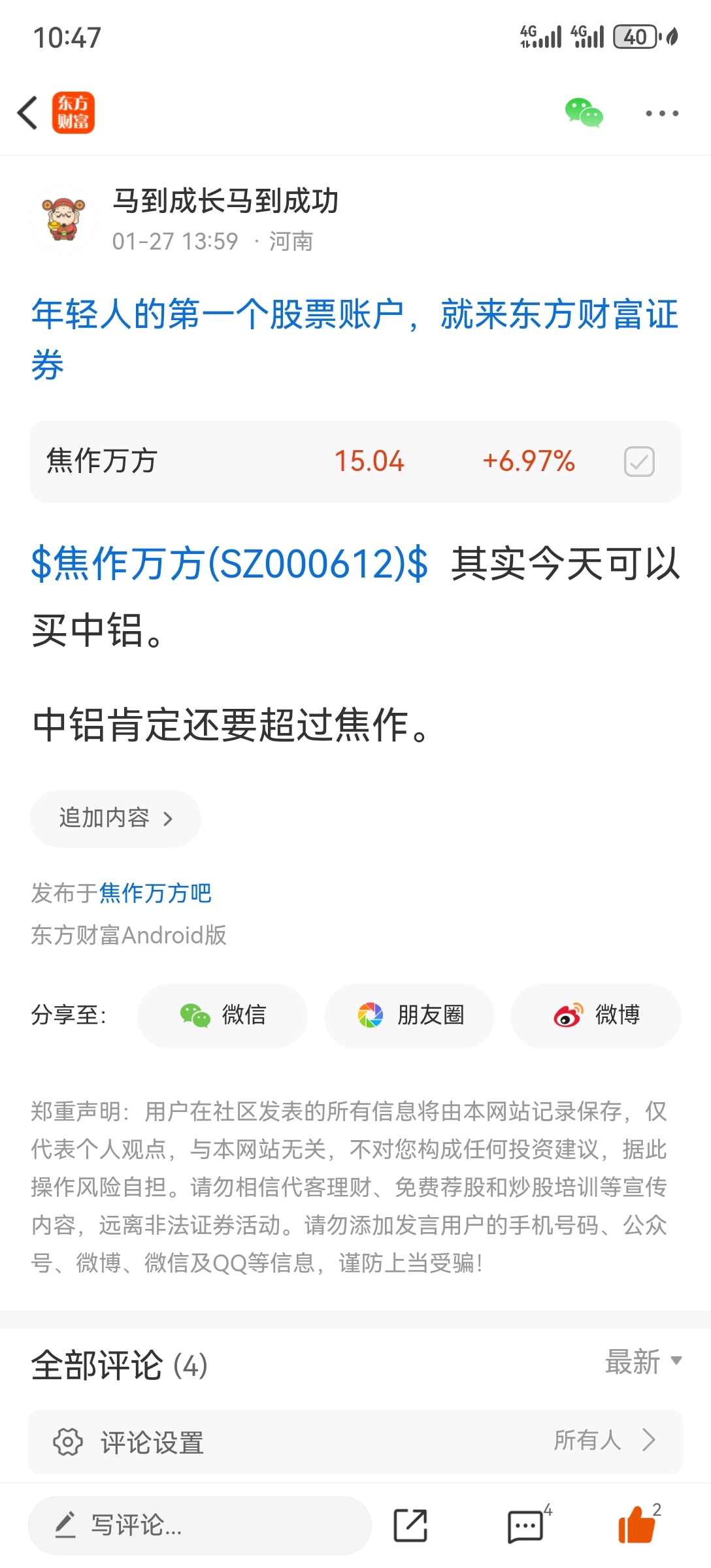温馨提示: 1.根据《证券法》规定,禁止编造、传播虚假信息或者误导性信息,扰乱证券市场;2.用户在本社区发表的所有资料、言论等仅代表个人观点,与本网站立场无关,不对您构成任何投资建议。用户应基于自己的独立判断,自行决定证券投资并承担相应风险。《东方财富社区管理规定》