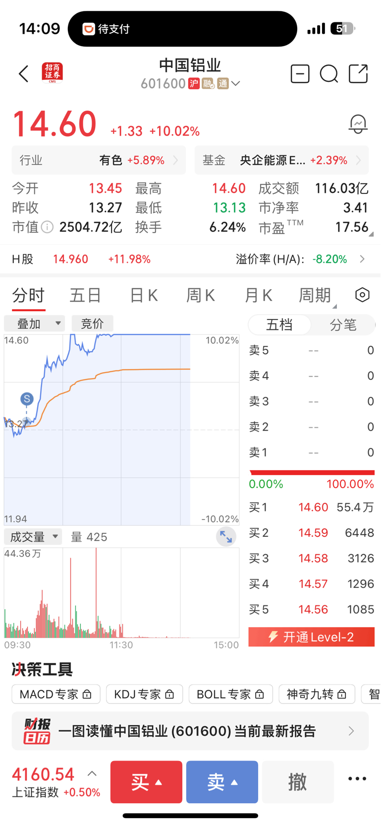 $中国铝业(SH601600)$ 昨天研究一天,尾盘满融满仓买入