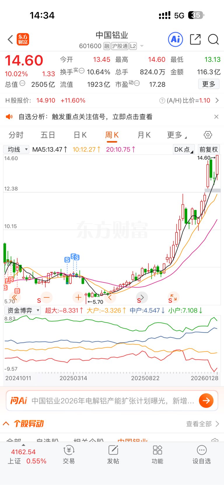 $中国铝业(SH601600)$ 赚不到认知以外的钱 谁能想到