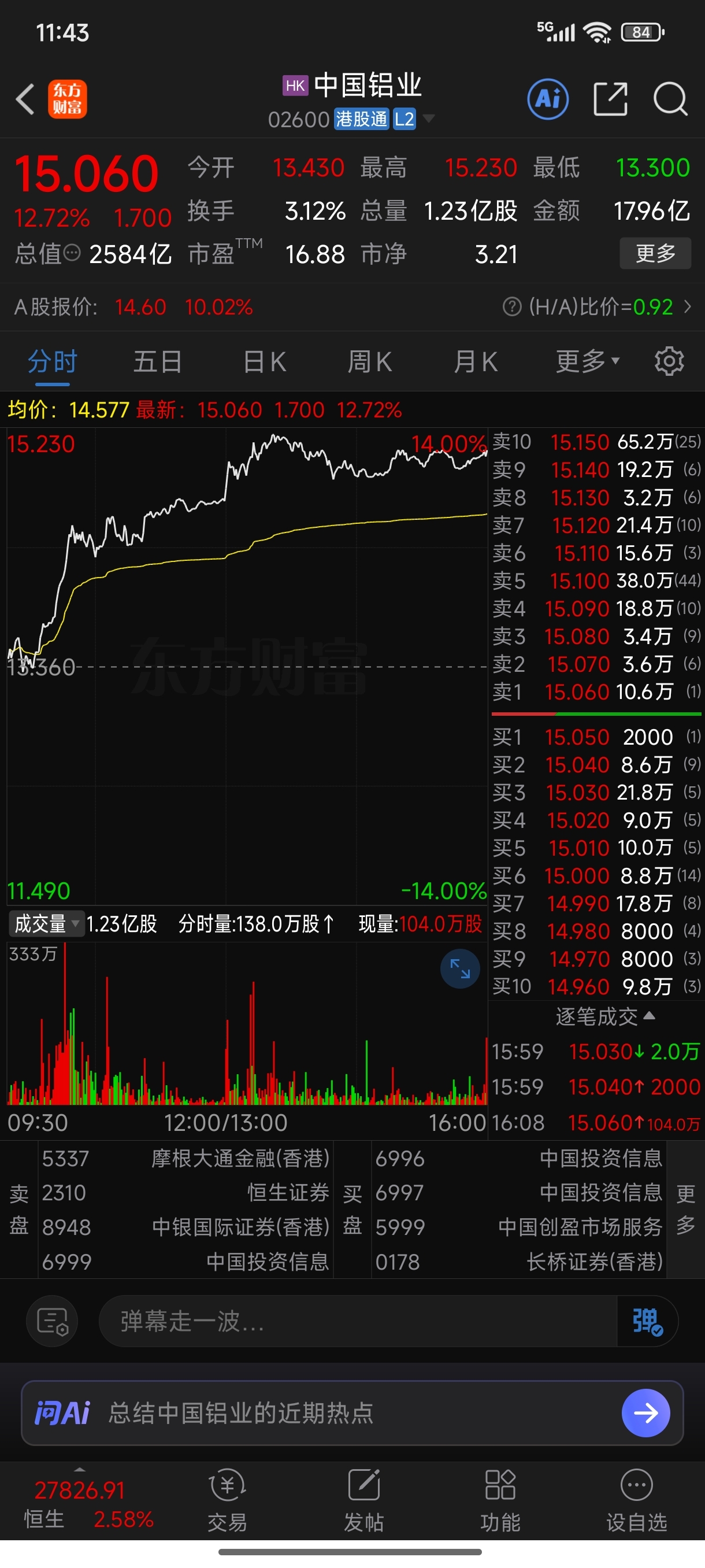 $中国铝业(SH601600)$ 真特么丢人,被港驴反超