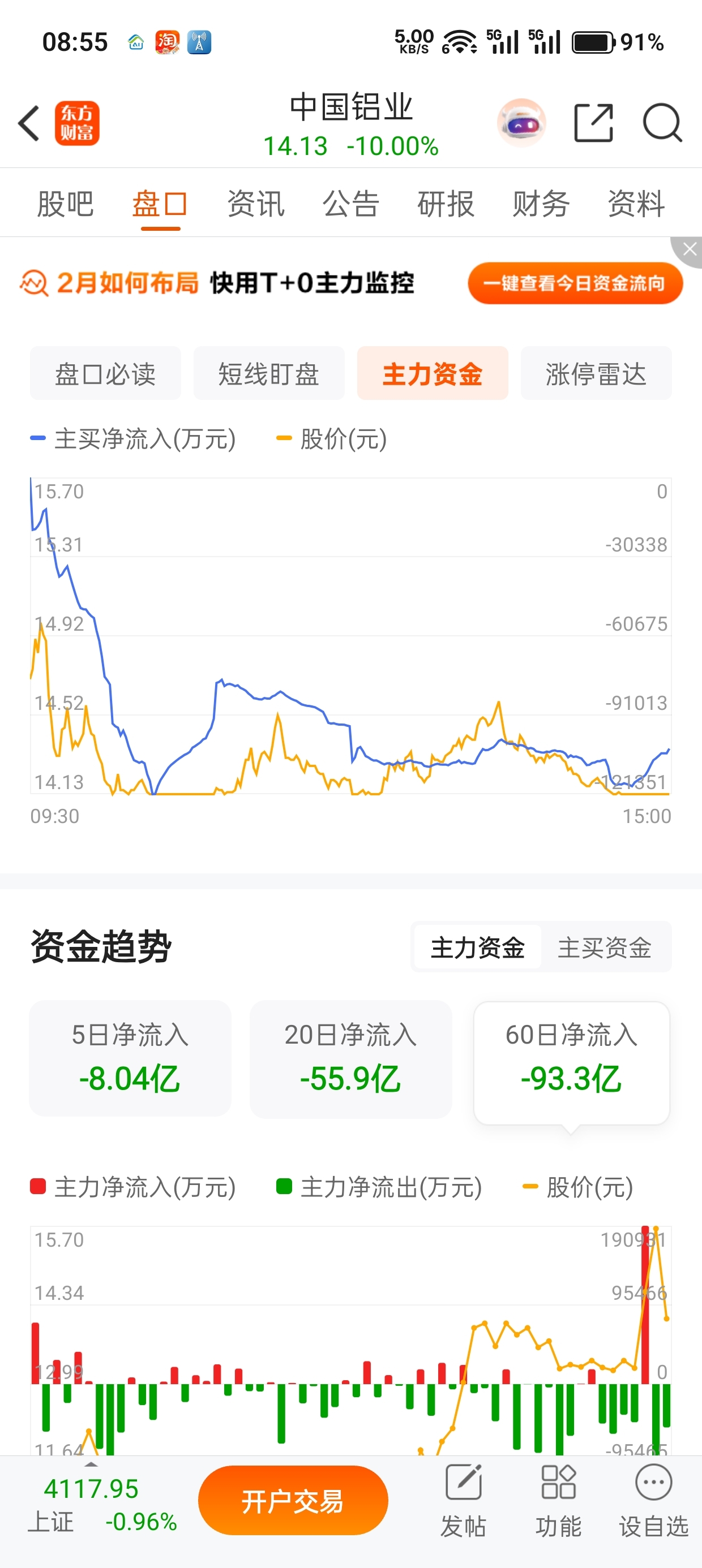 $中国铝业(SH601600)$ 资金流出严重