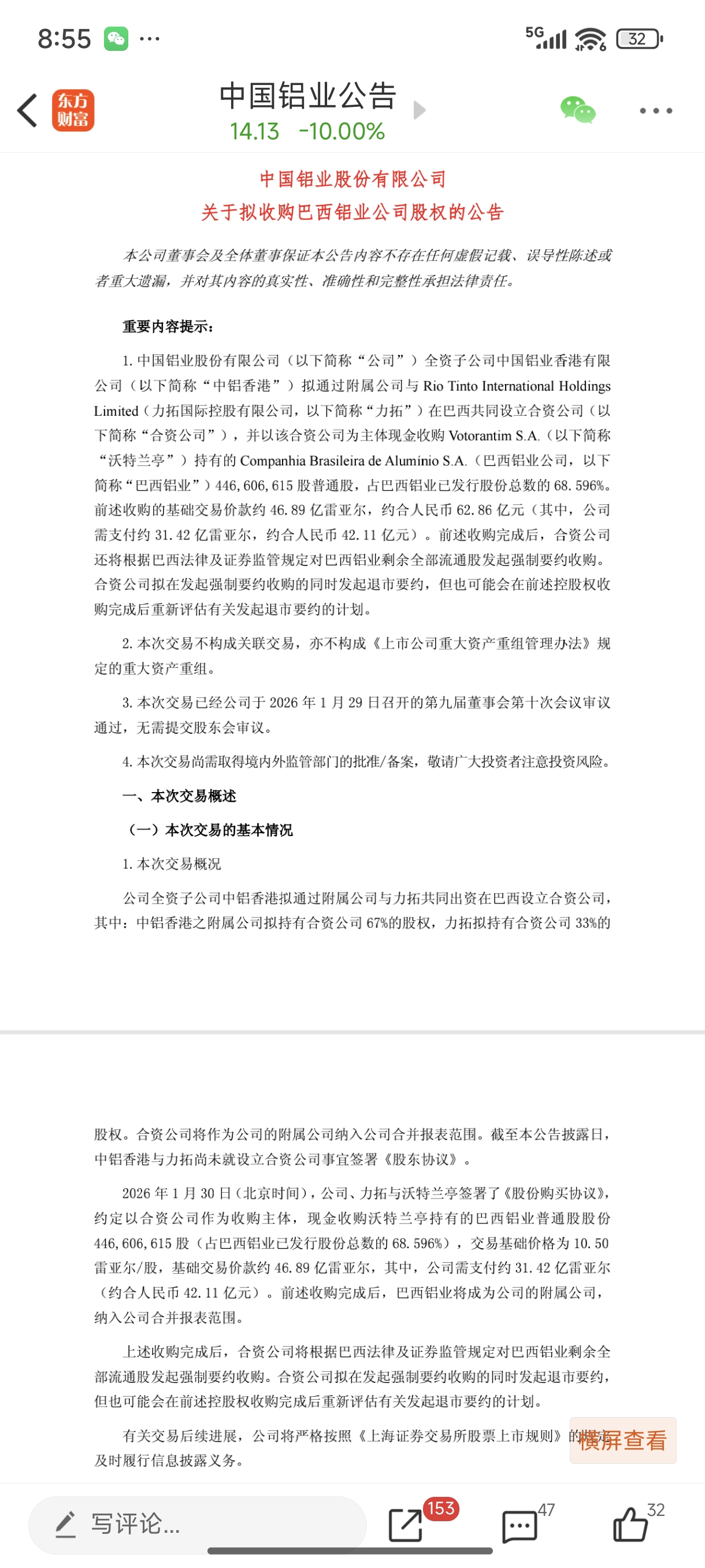 $中国铝业(SH601600)$ 公司都抄底了,这是利好吧