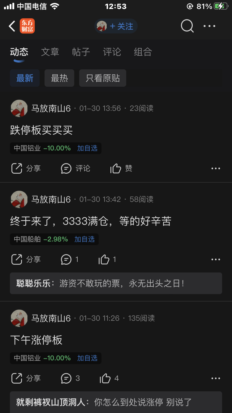 温馨提示: 1.根据《证券法》规定,禁止编造、传播虚假信息或者误导性信息,扰乱证券市场;2.用户在本社区发表的所有资料、言论等仅代表个人观点,与本网站立场无关,不对您构成任何投资建议。用户应基于自己的独立判断,自行决定证券投资并承担相应风险。《东方财富社区管理规定》